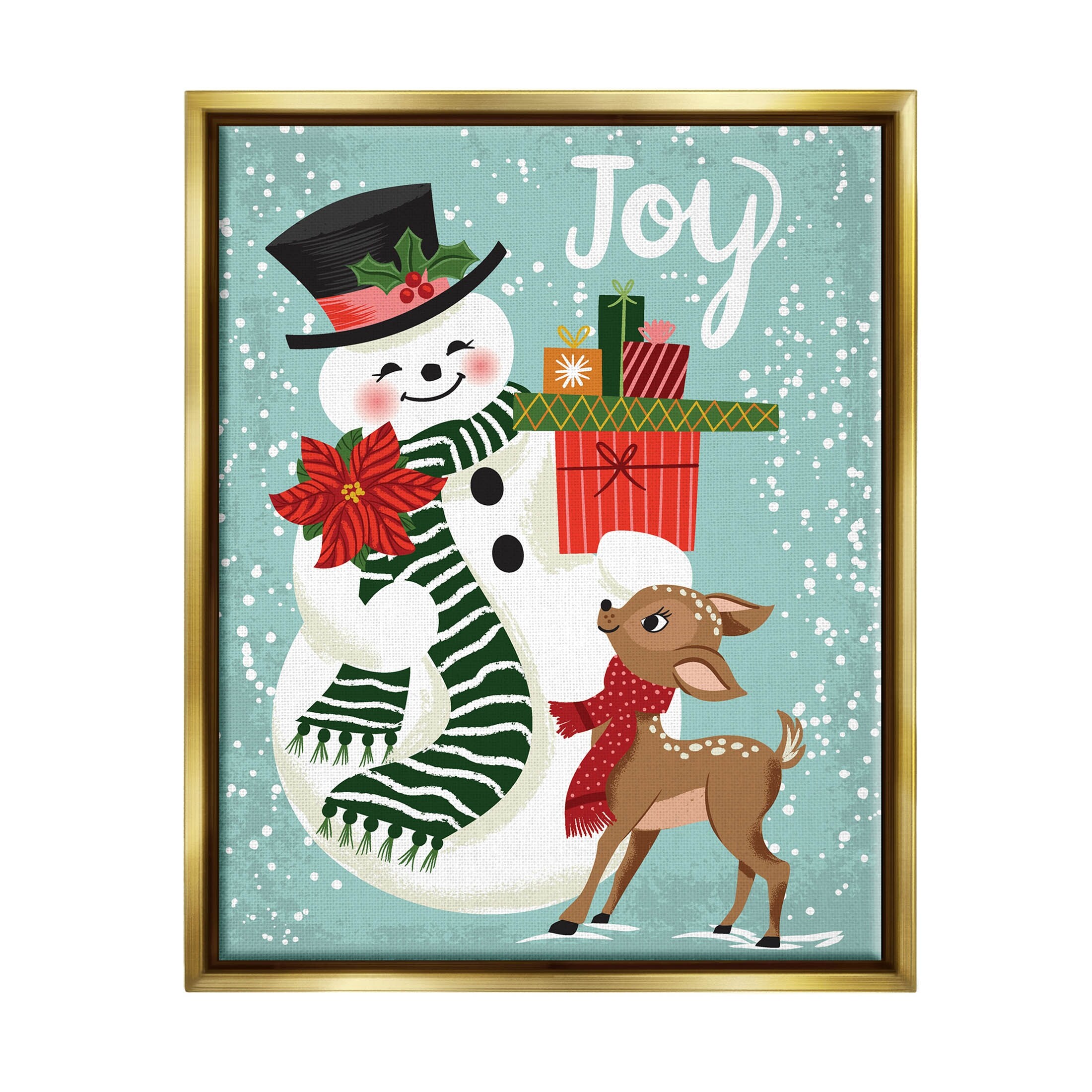 Stupell Joy Smiling Snowman Holiday Deer Floater Canvas Wall Art by Arrolynn Weiderhold