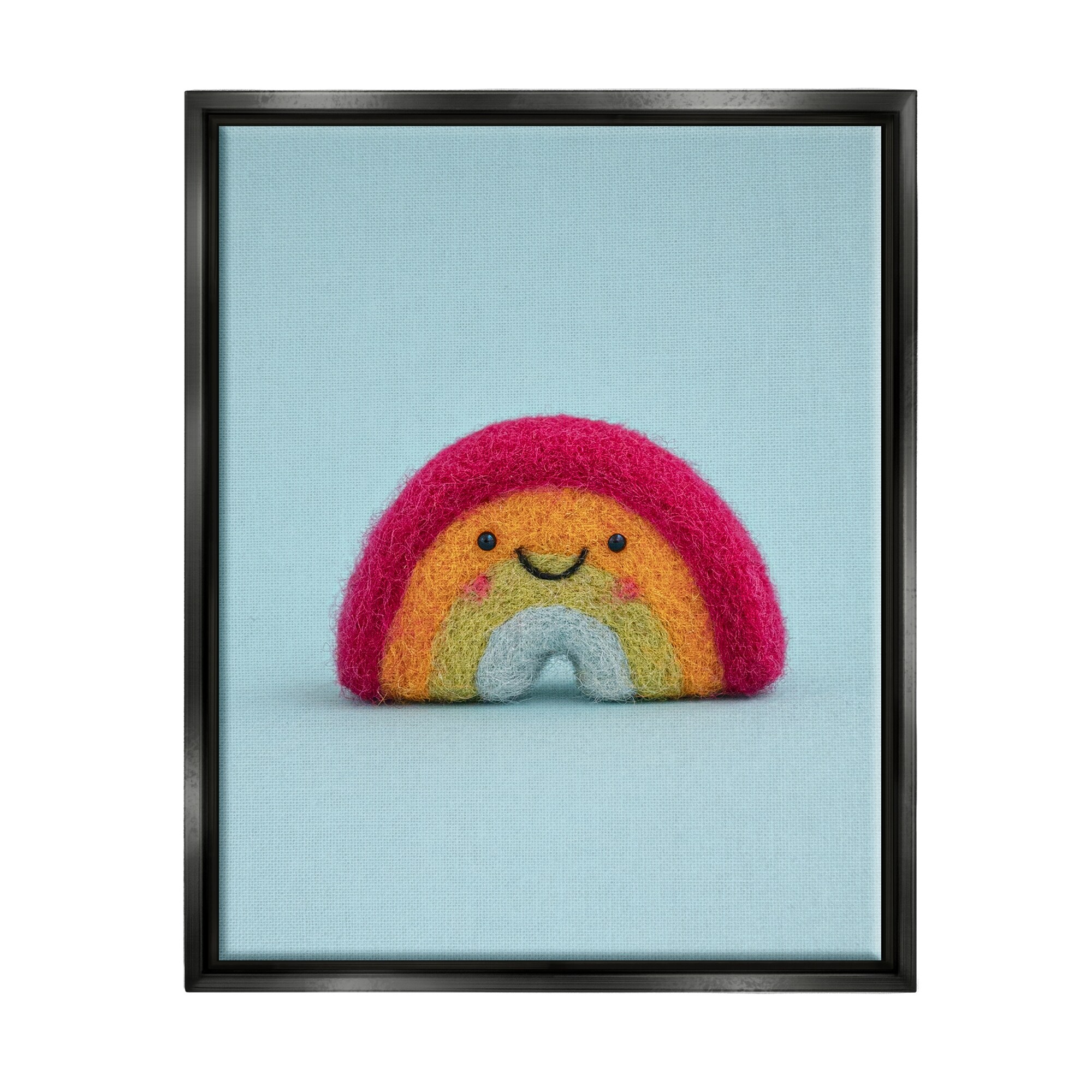Stupell Industries Happy Smiling Rainbow Blue Background Framed Floater Canvas Wall Art by Lemon & Sugar
