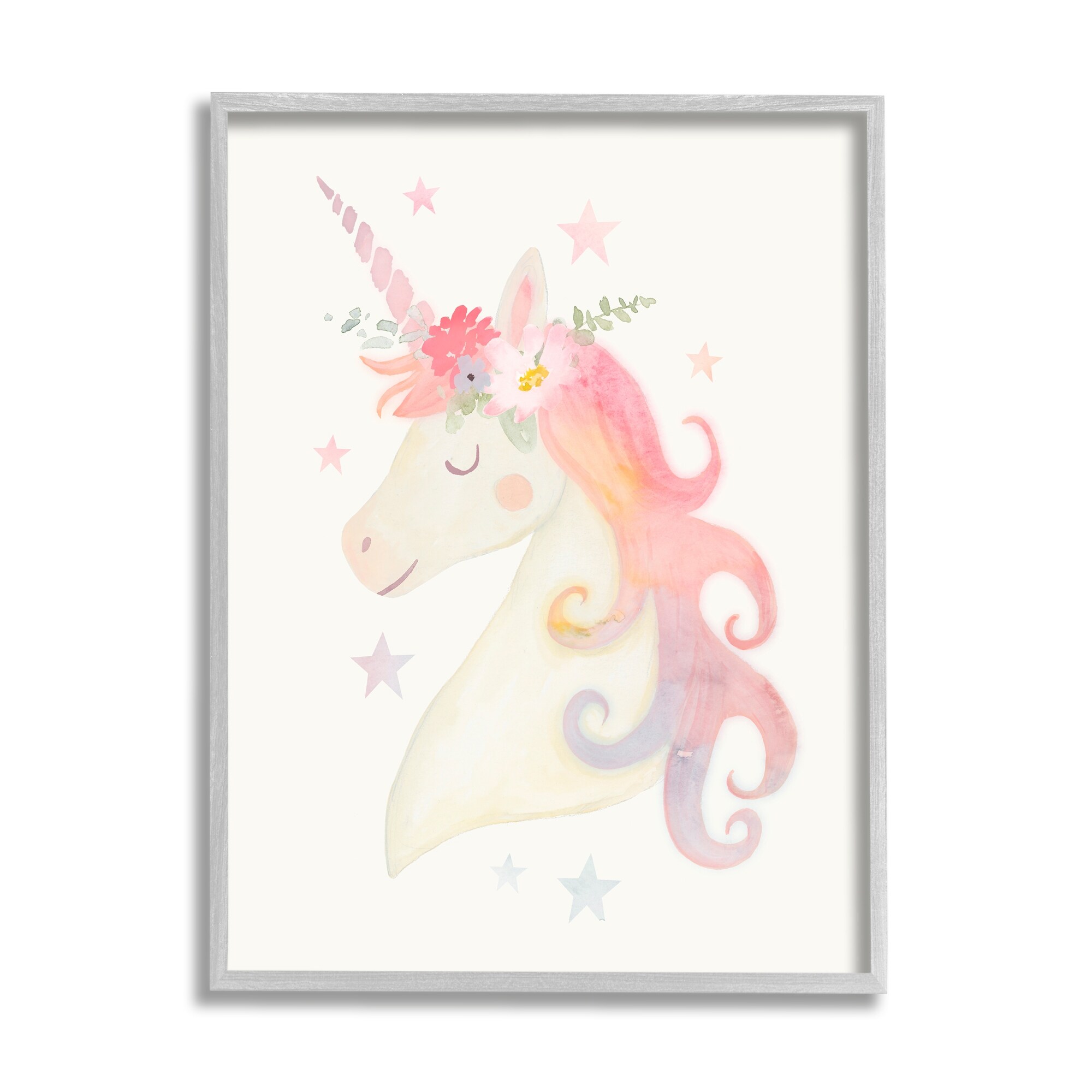 Stupell Charming Unicorn Smiling Flower Crown Stars Design Framed Wall Art, Design by Victoria Barnes