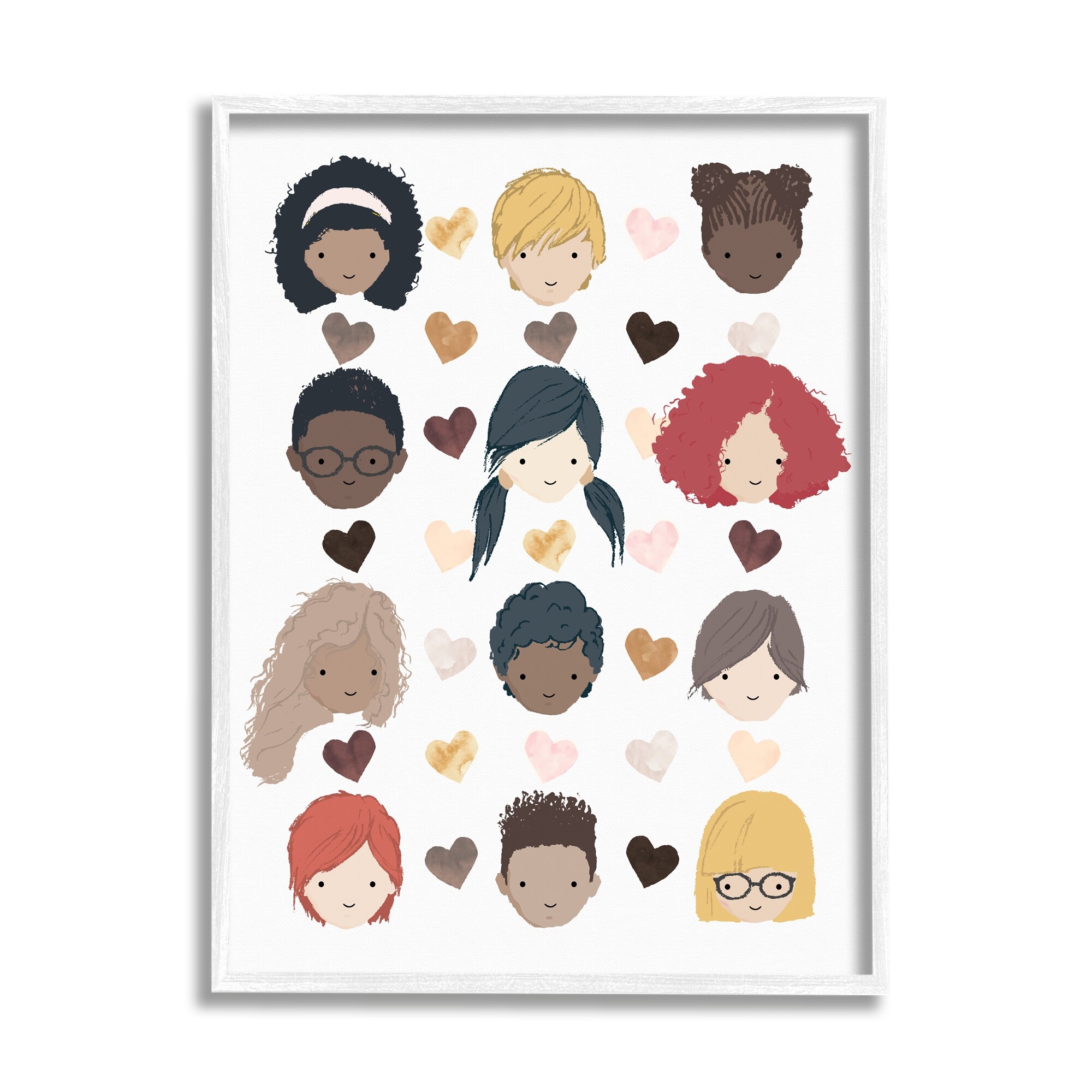 Stupell Industries Smiling Children Diverse Multicultural Pink Brown Hearts Framed Wall Art