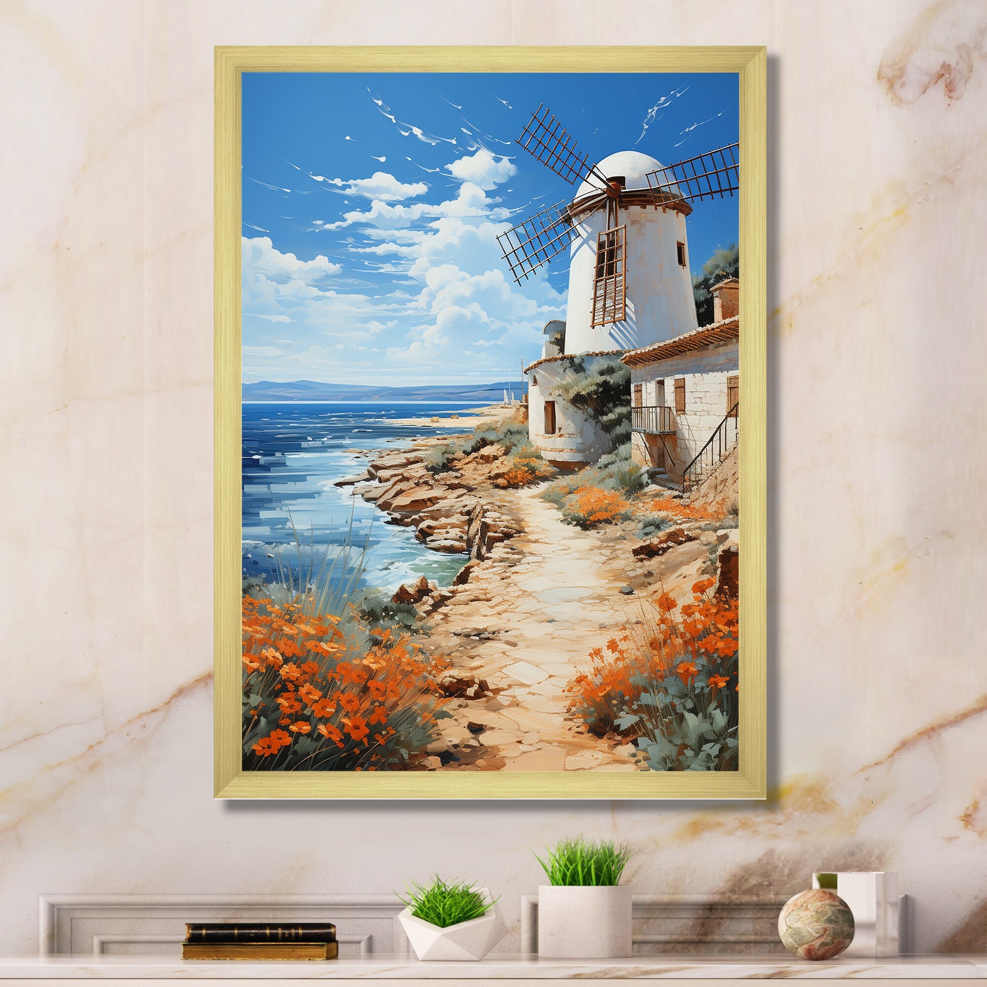 Designart "Spanish Windmills Coastline II" Spain Framed Canvas Prints