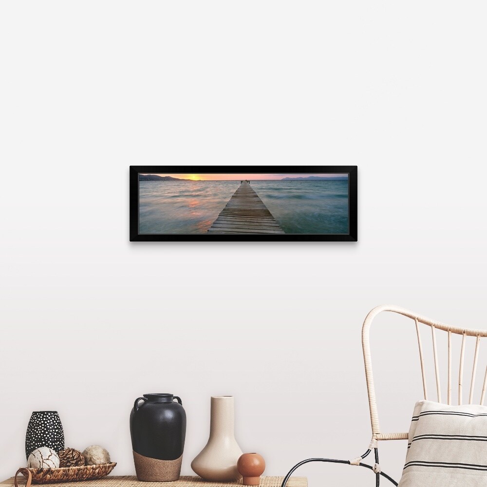 "Pier at sunset in the sea, Alcudia, Majorca, Spain" Black Framed Print