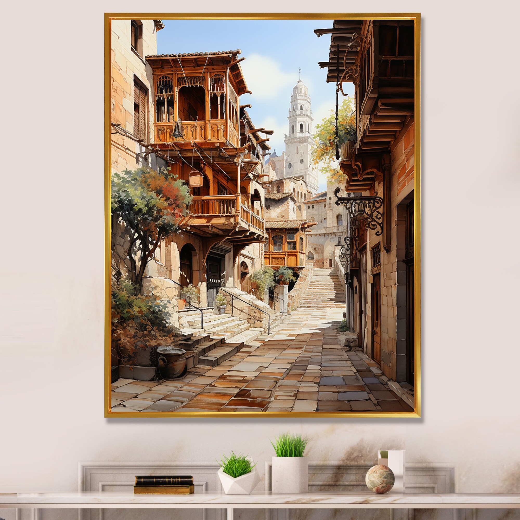 Designart "Spain Medieval Streets of Toledoin I" Spain Framed Canvas Prints