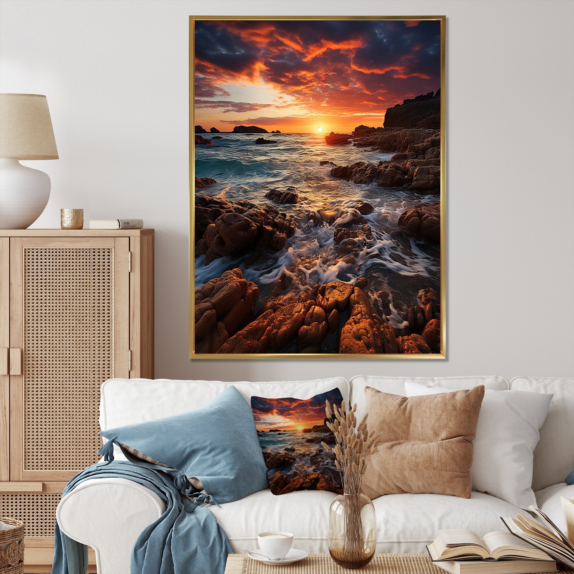 Designart "Spain Sunset At Ibizas I" Spain Framed Wall Art Living Room