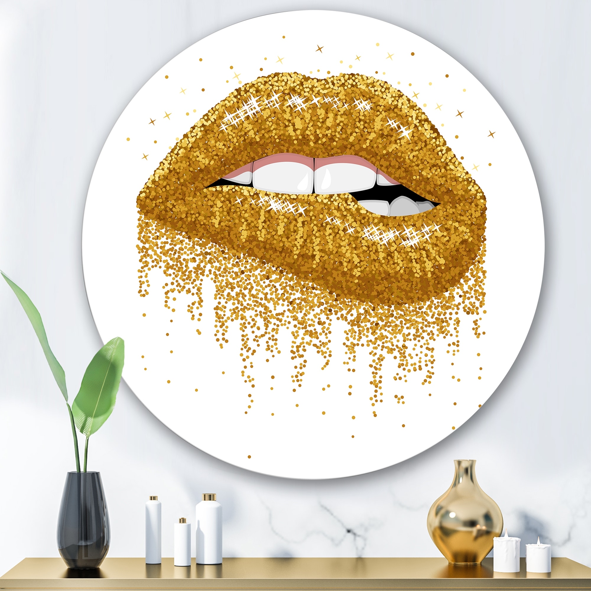 Designart 'Woman Lips With Glitter Gold Sparkles' Modern Metal Circle Wall Art