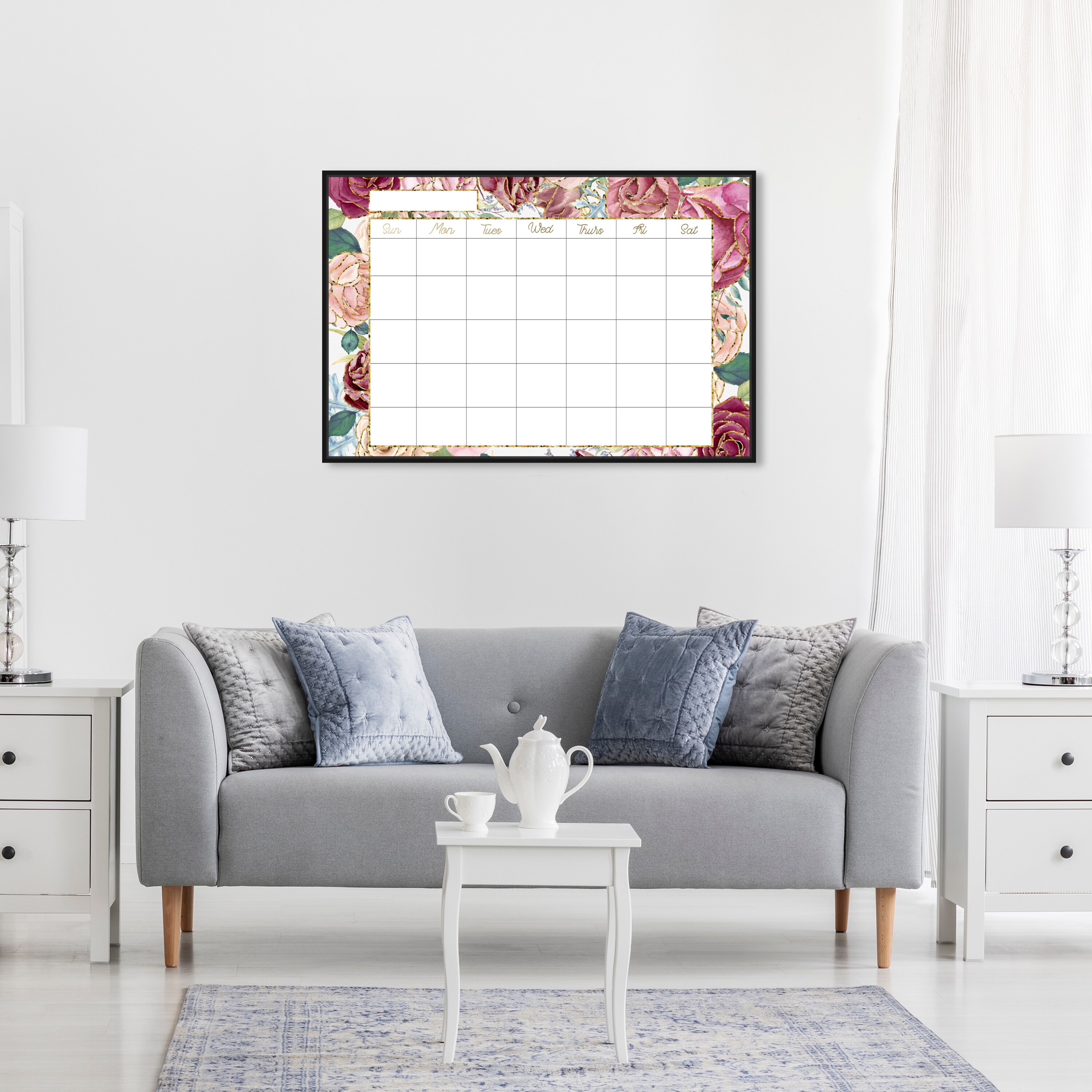 Oliver Gal 'Sparkling Flowers Calendar' Floral and Botanical Wall Art Framed Canvas Print Florals - Pink, Gold