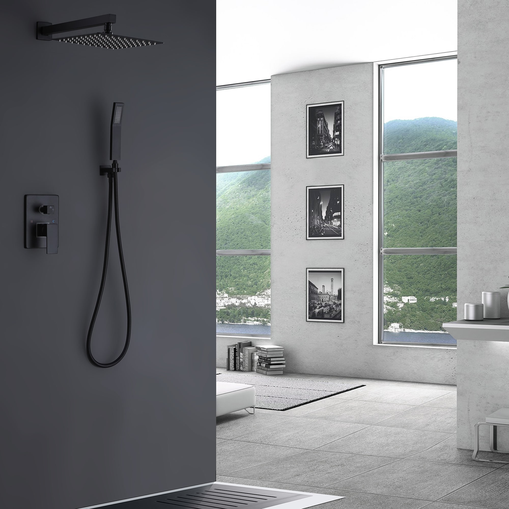 10-in Square Wall Mount Rainfall Shower System with Waterfall Spout