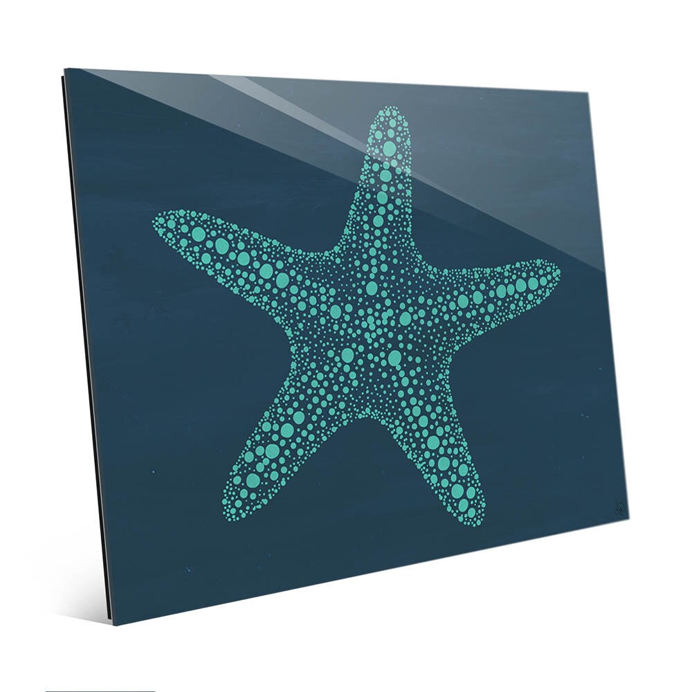Starfish Dots in Teal Blue Wall Art Print on Glass