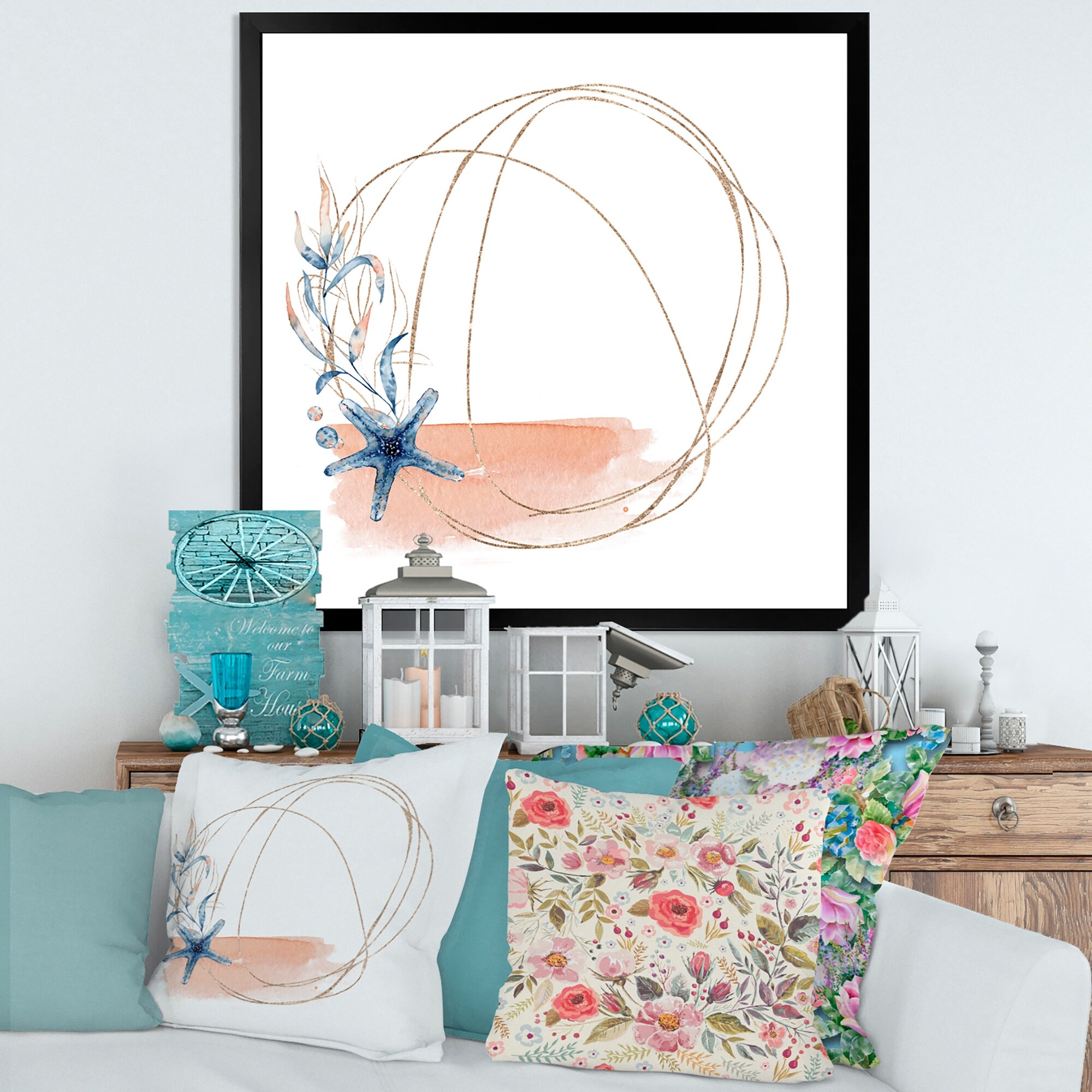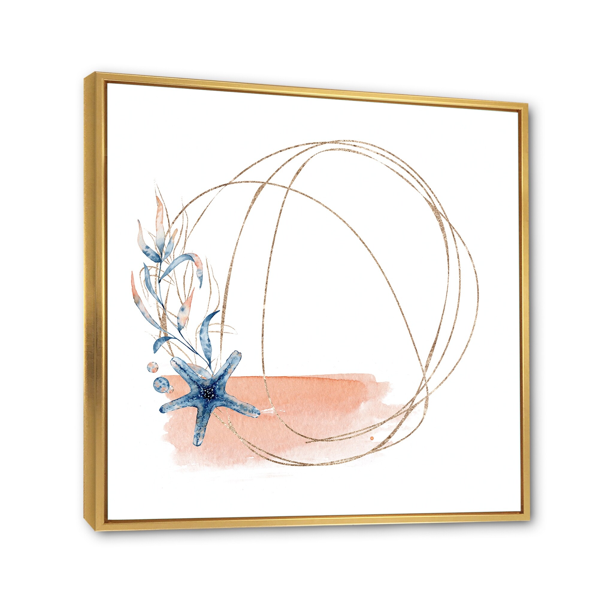 Designart "Golden Frame With Starfish" Nautical & Coastal Framed Canvas Wall Art Print