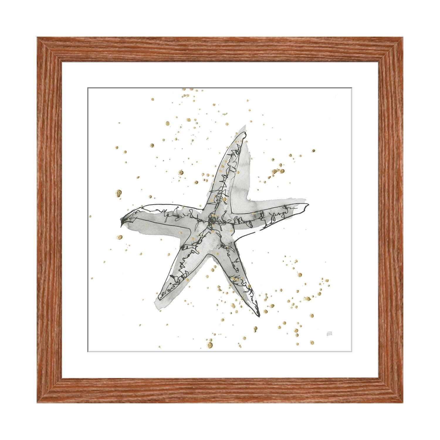 Designart "Golden Frame With Starfish" Nautical & Coastal Framed Art Print