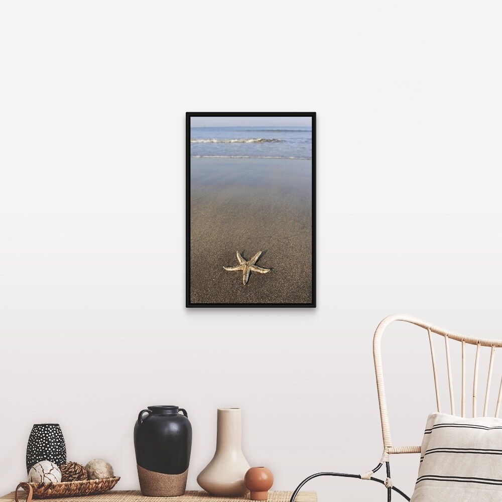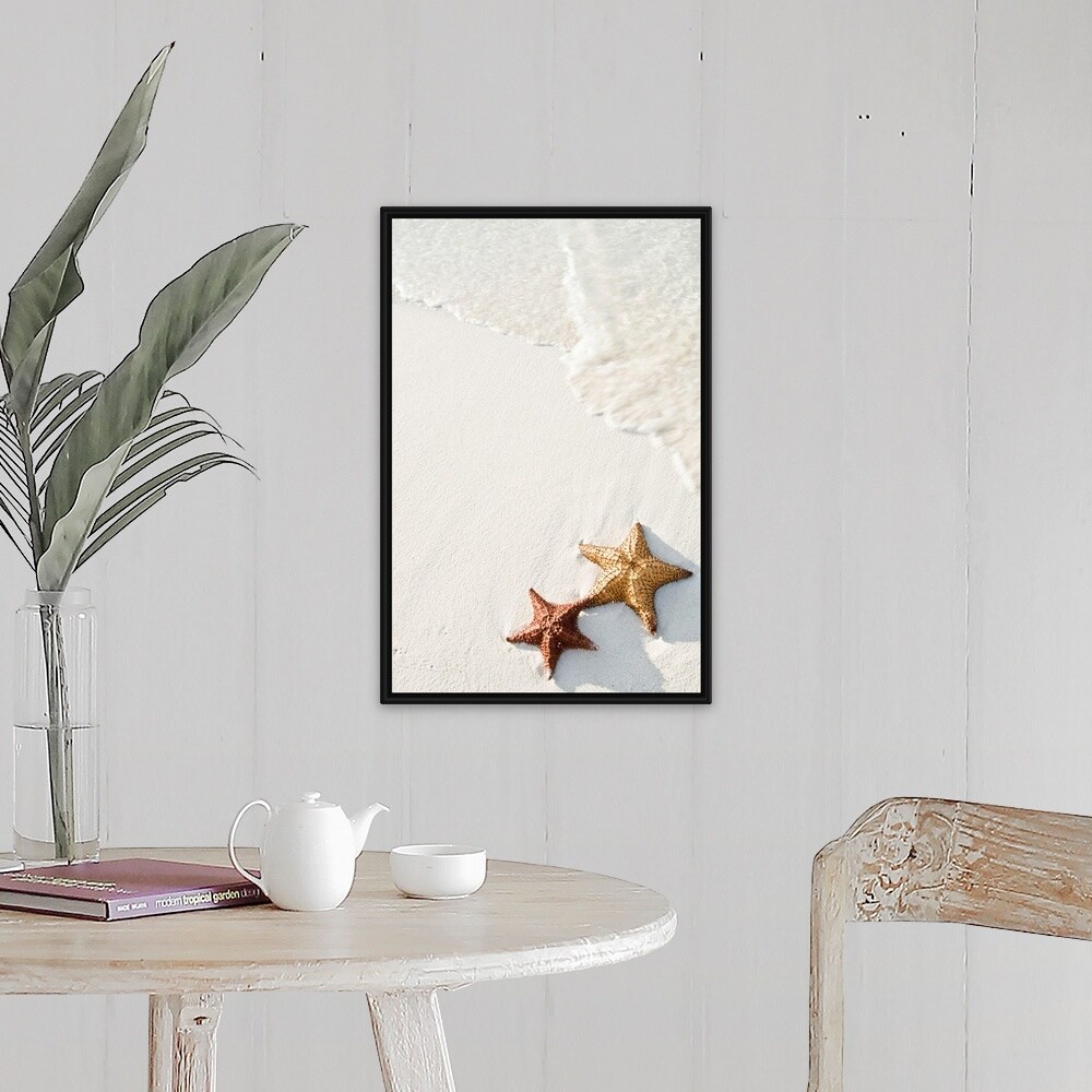 "Starfish on tropical beach." Black Float Frame Canvas Art