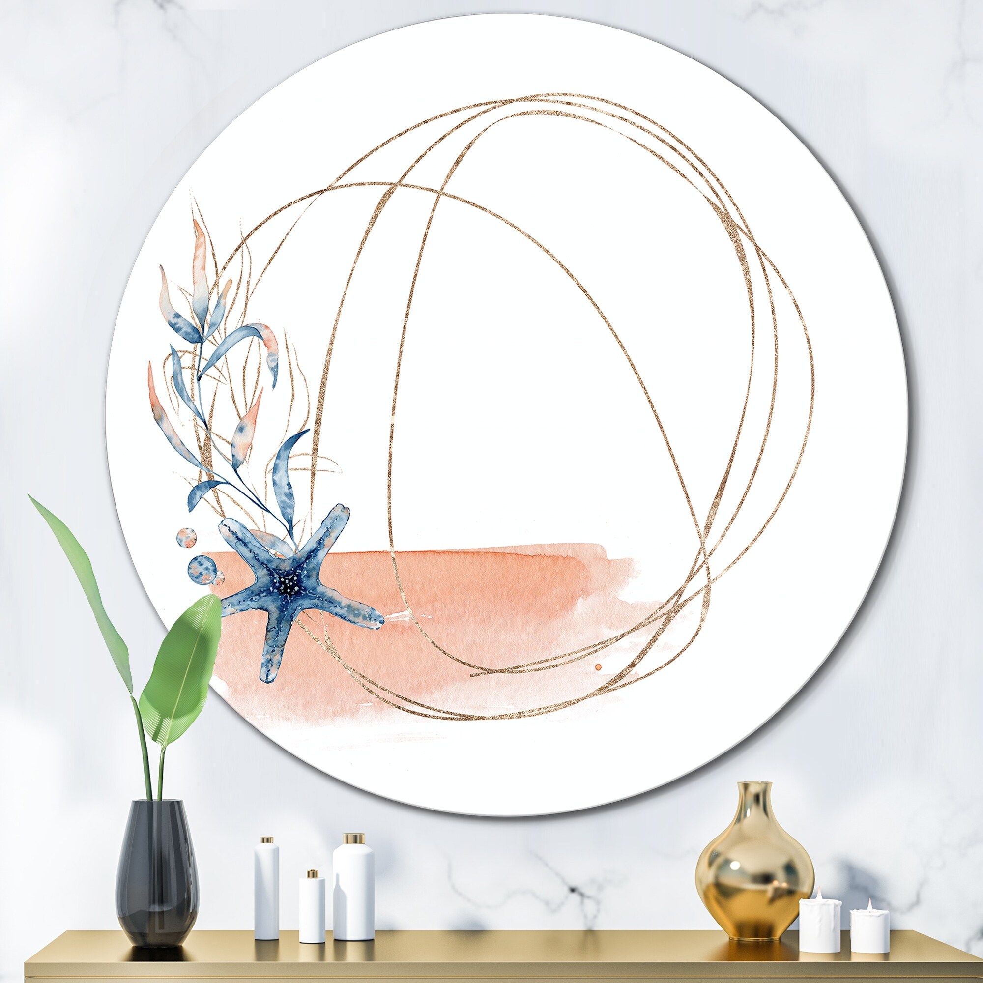 Designart 'Golden Frame With Starfish' Nautical & Coastal Metal Circle Wall Art