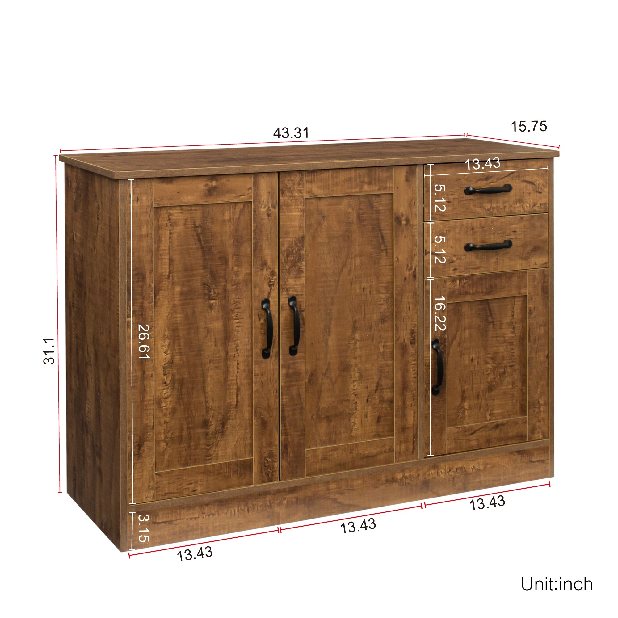 Wood Buffet Sideboard with 2 doors 1 Storage and 2drawers