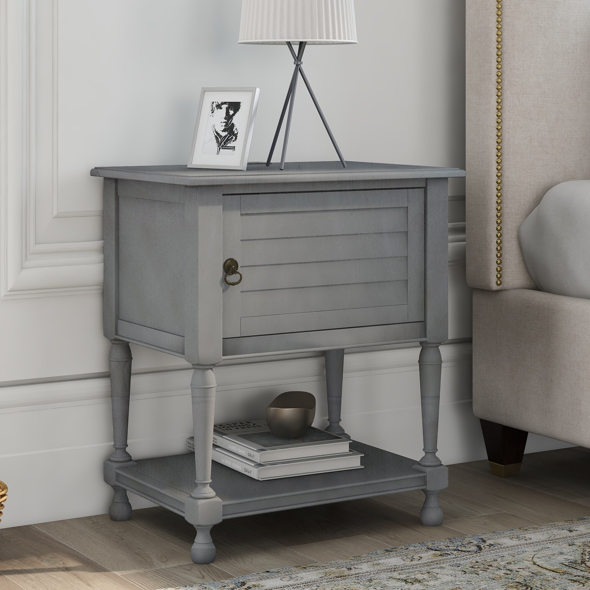 Modern Bedroom Nightstand with 3 Drawers Storage With Stable Legs,Grey