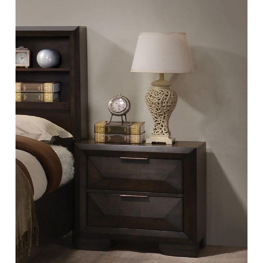 Merveille Nightstand in Espresso with 2 Spacious Storage Drawers,Transitional Style