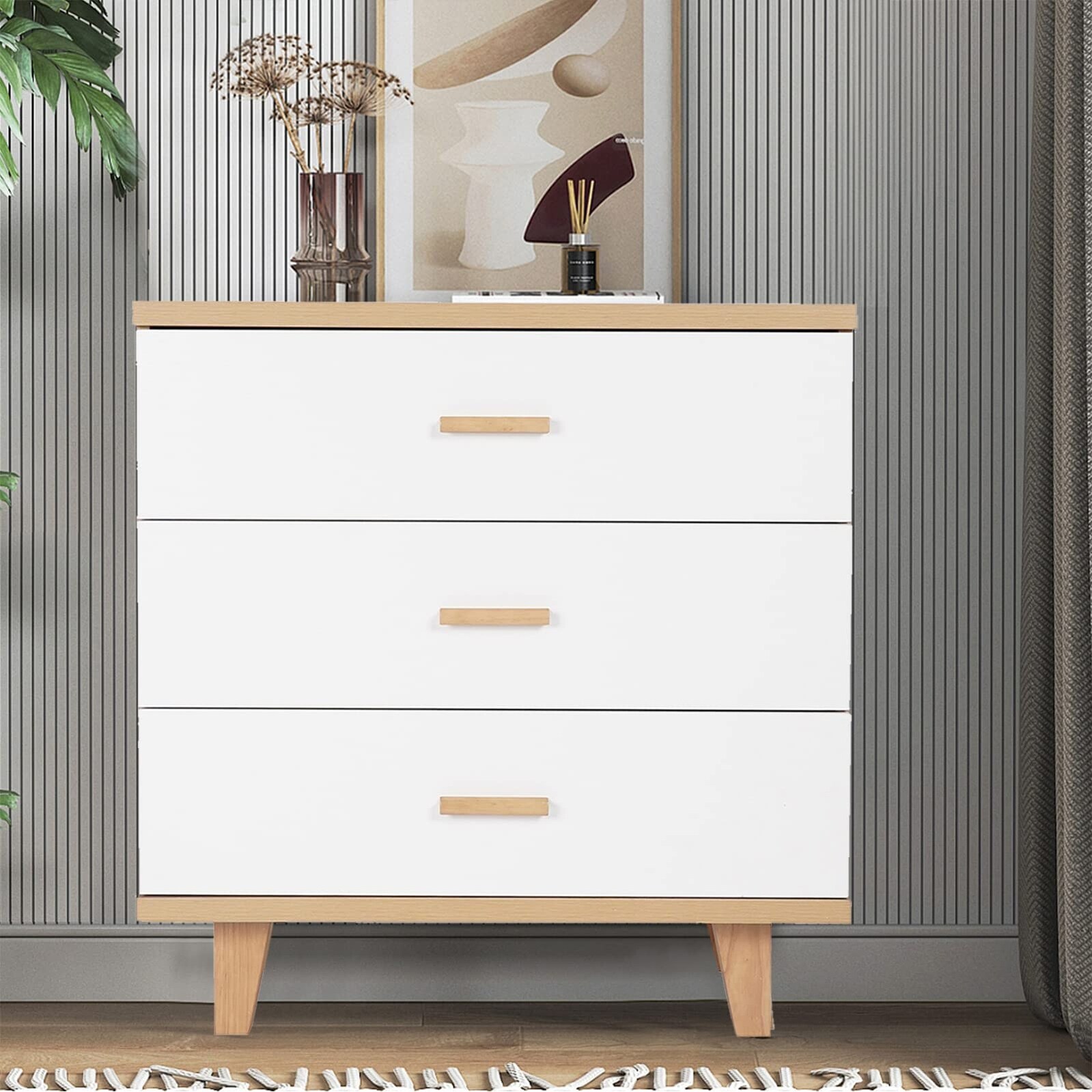 3 Drawer Dresser,Modern Dresser Chest Chest of Drawer with Solid Wood Legs and knobs,Side Table Large Storage Cabinet