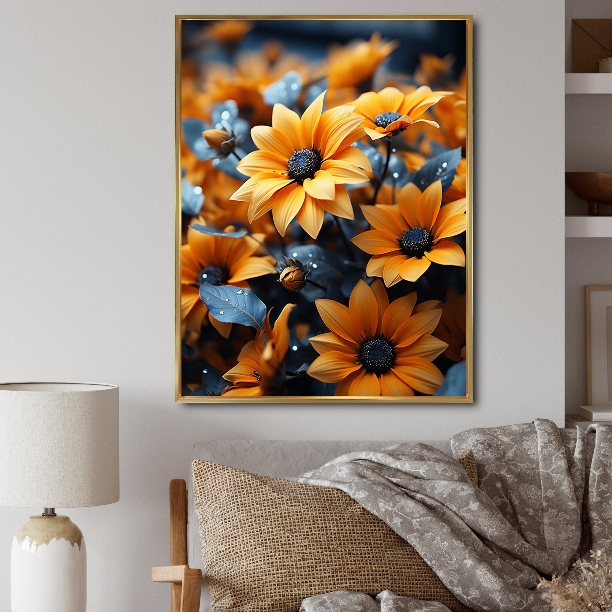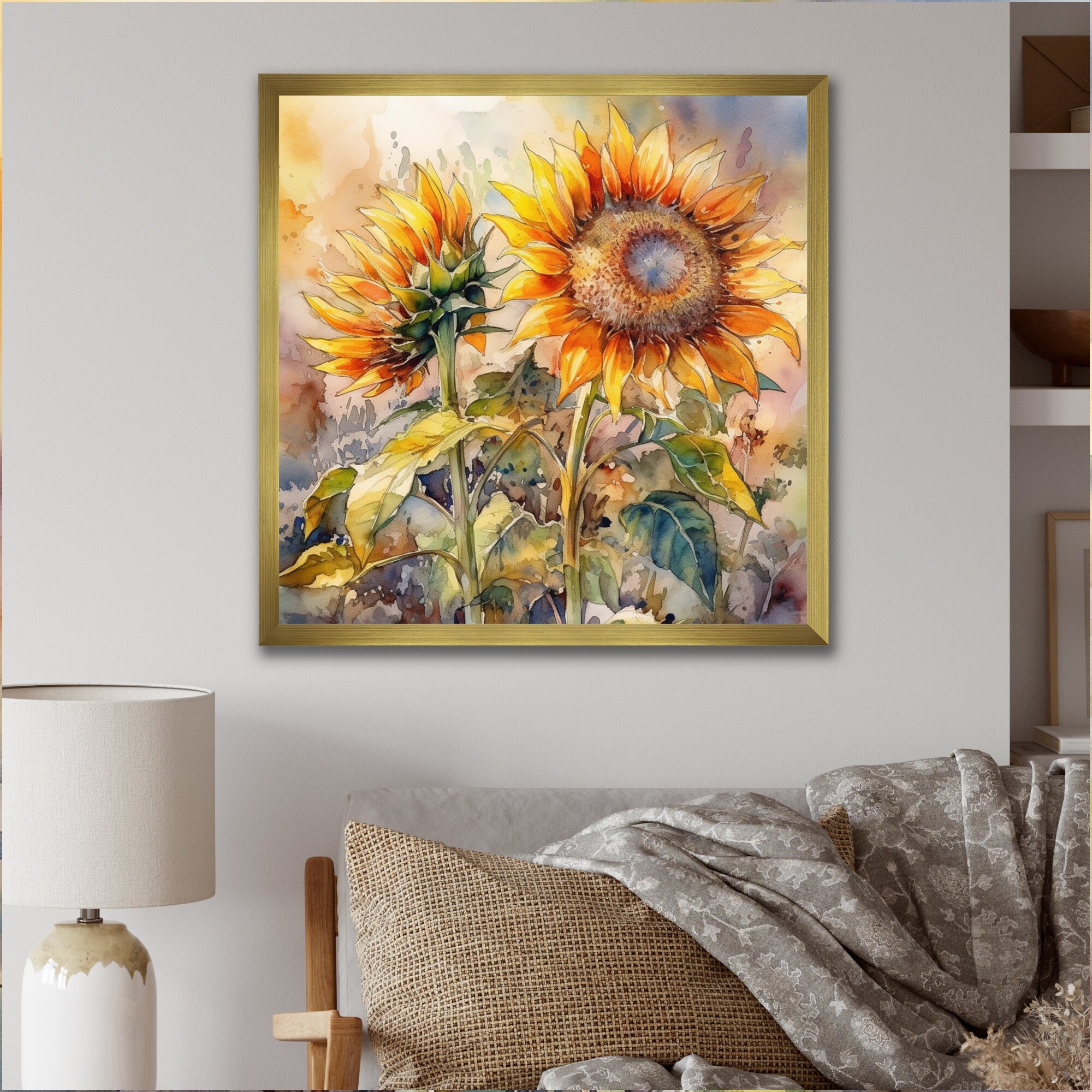 Designart "Golden Cheerful Sunflowers II" Sunflowers Framed Canvas Prints