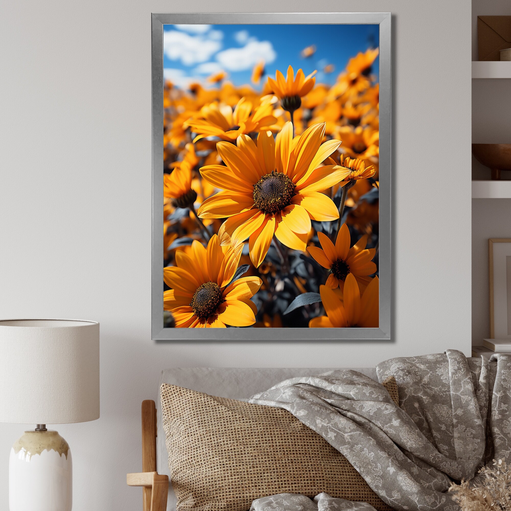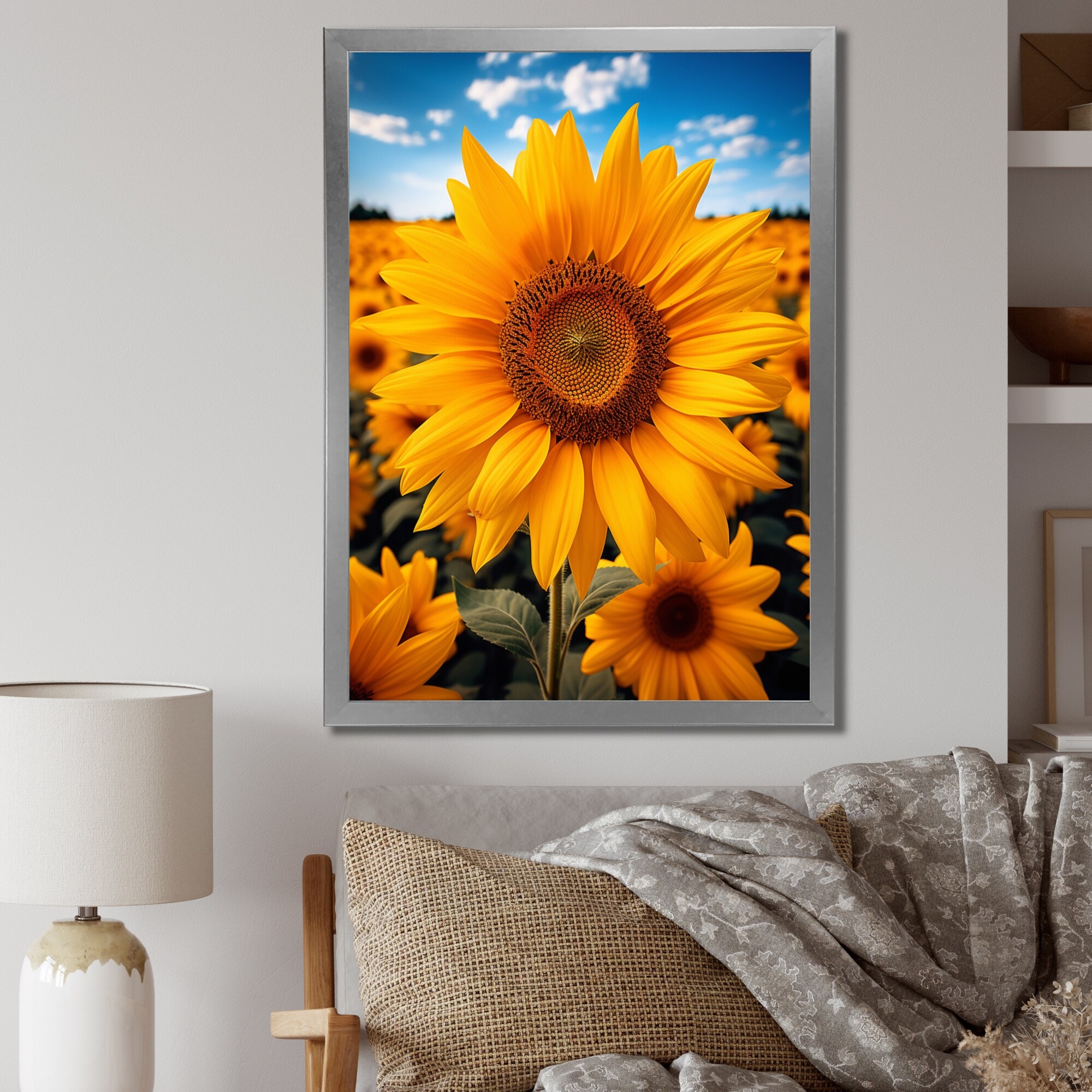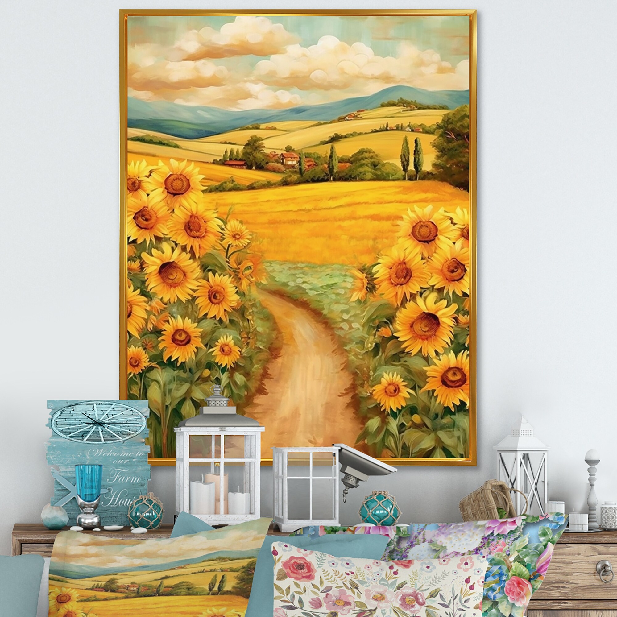 Designart "Golden Sunflower At the Farm III" Sunflowers Framed Wall Decor
