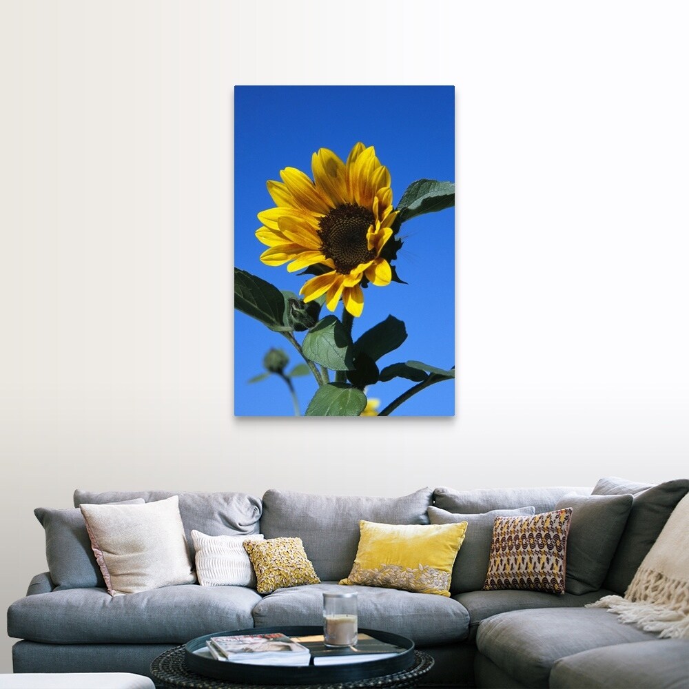 "Sunflower in bloom, blue sky." Canvas Wall Art