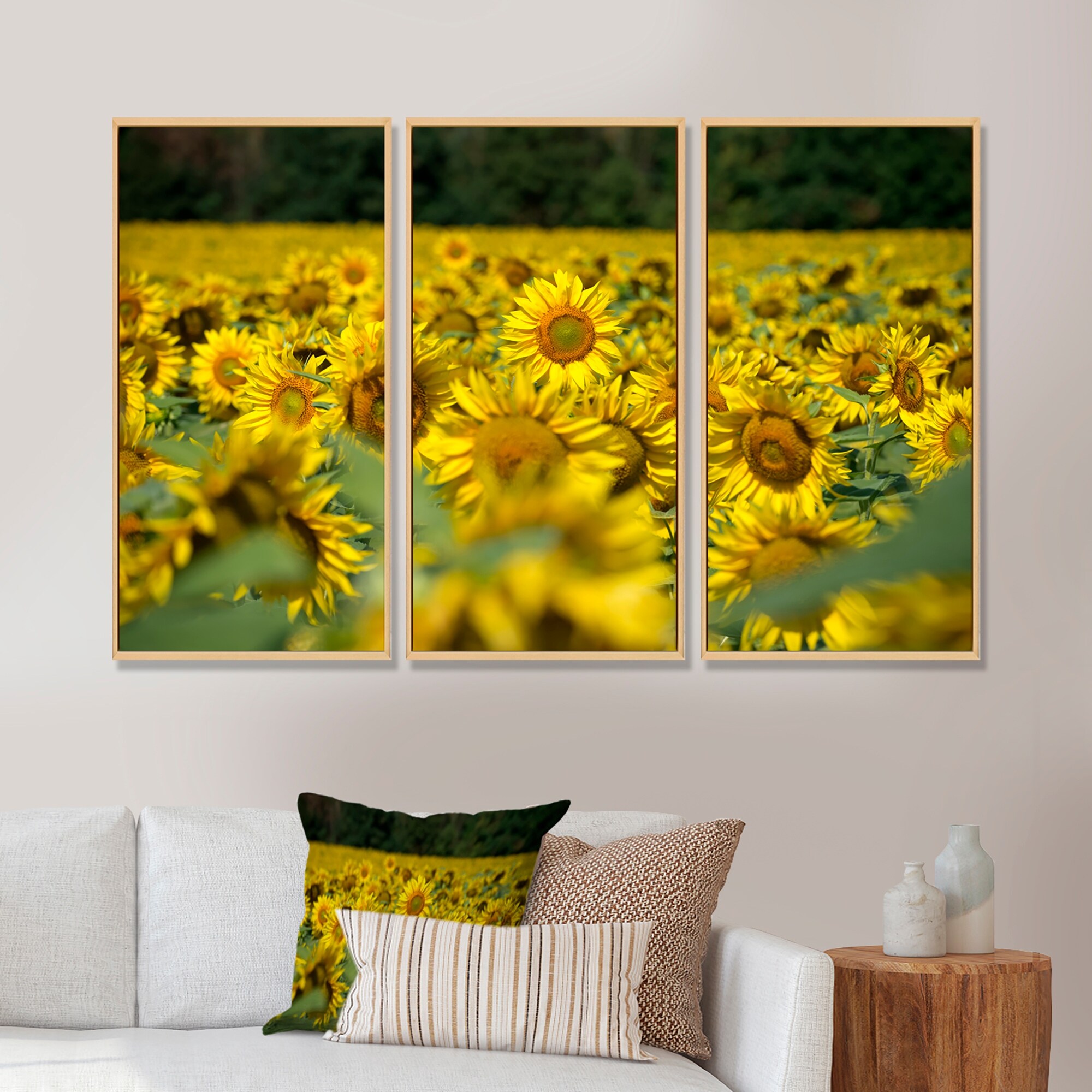 Designart "Bright Yellow Sunflowers Field" Floral Framed Art Prints Set of 3 - 4 Colors of Frames