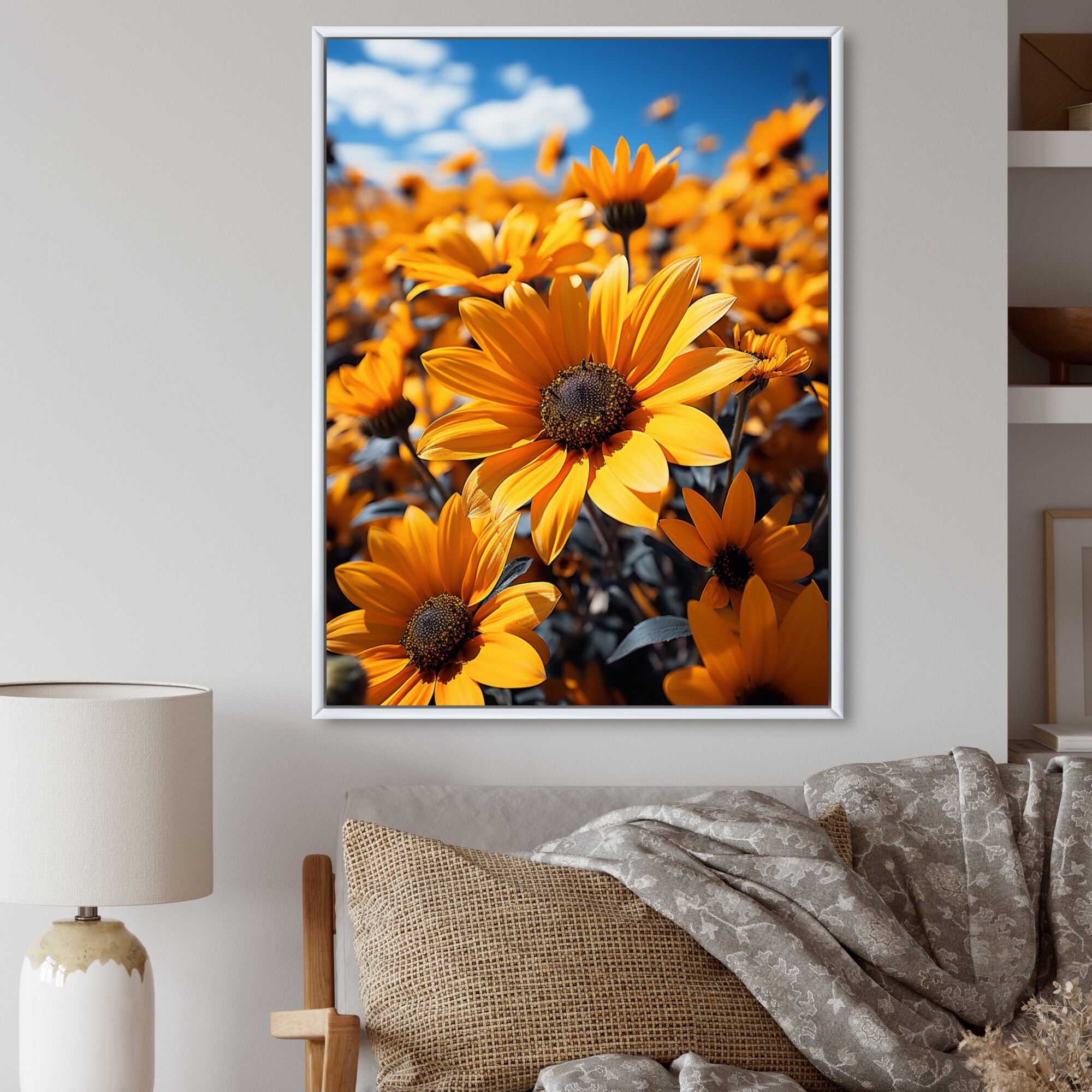 Designart "Yellow Dancing Sunflowers I" Sunflowers Framed Canvas Wall Art