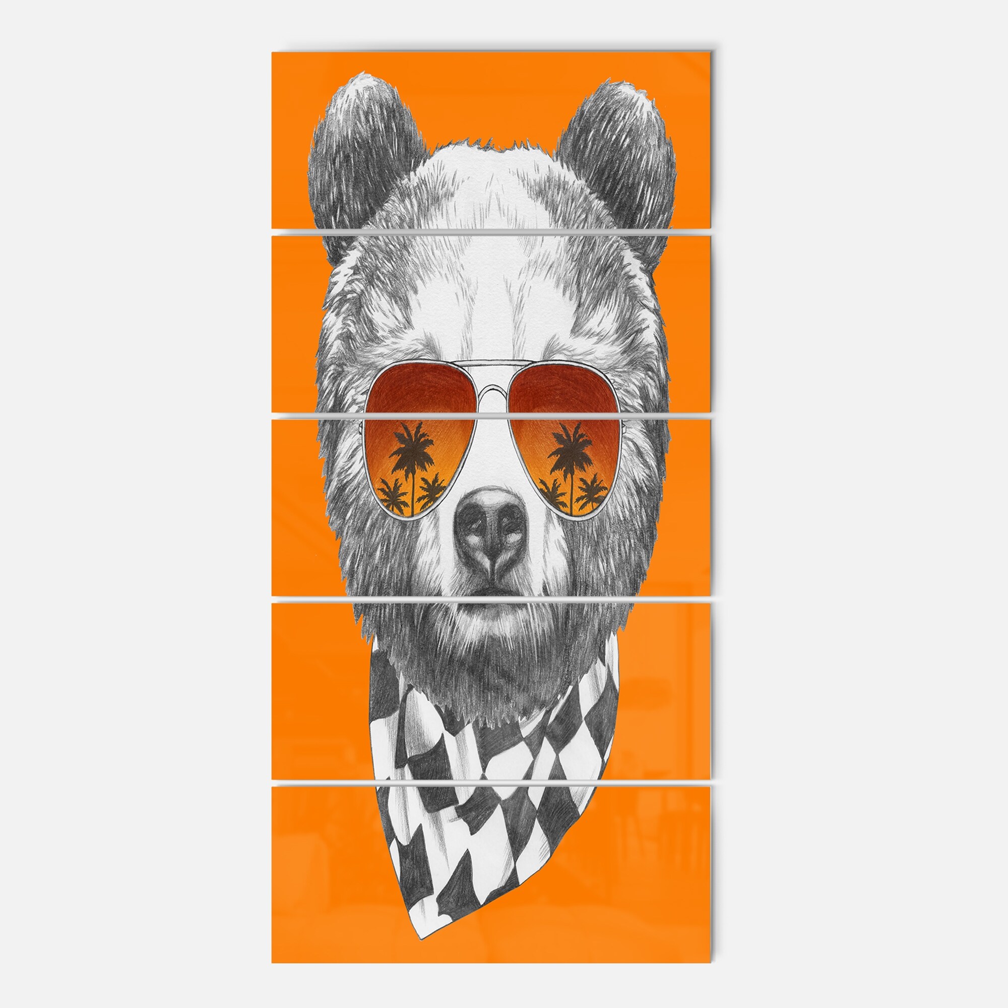 Designart 'Funny Bear with Sunglasses' Large Animal Metal Wall Art