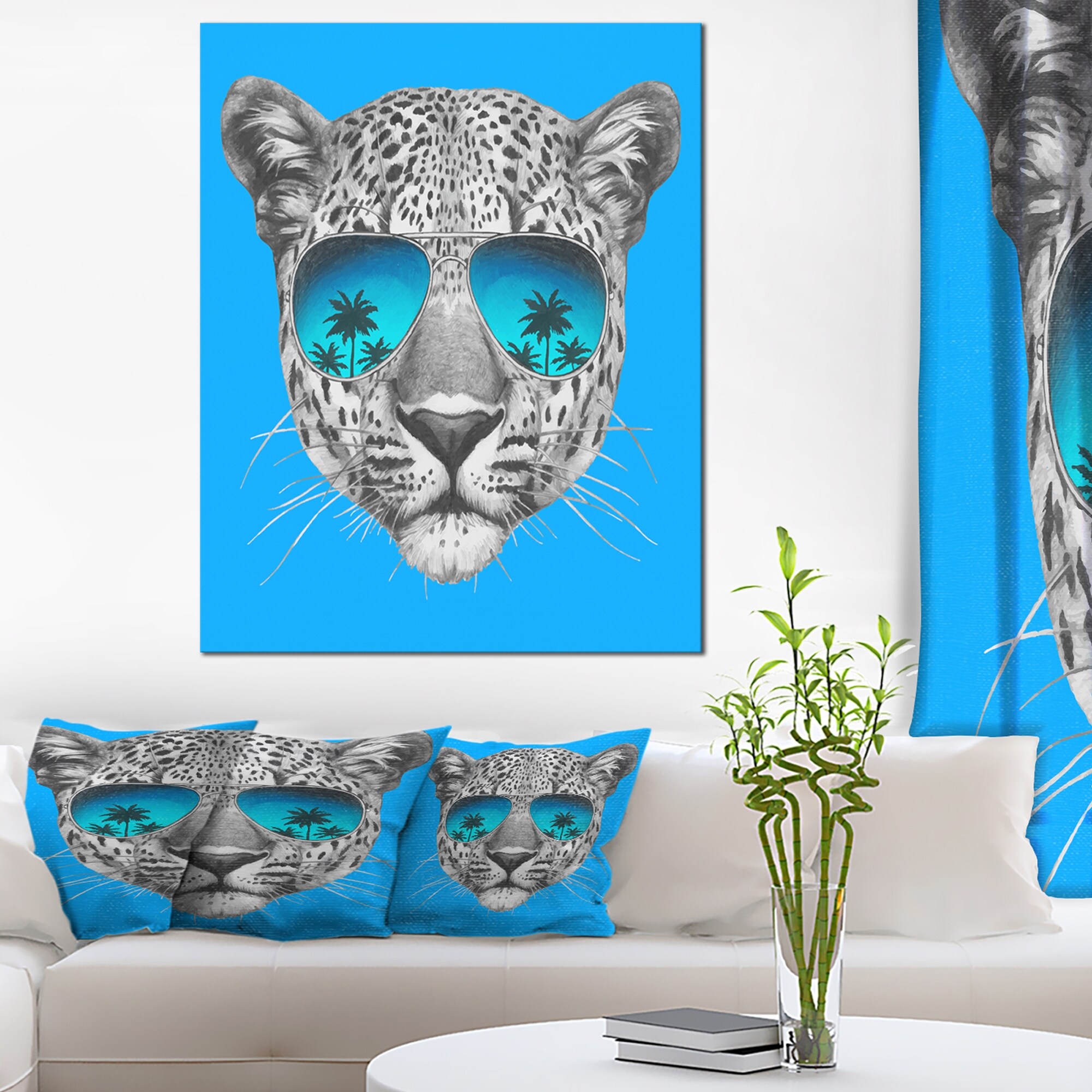 Designart "Leopard with Mirror Sunglasses" Animal Canvas Art Print