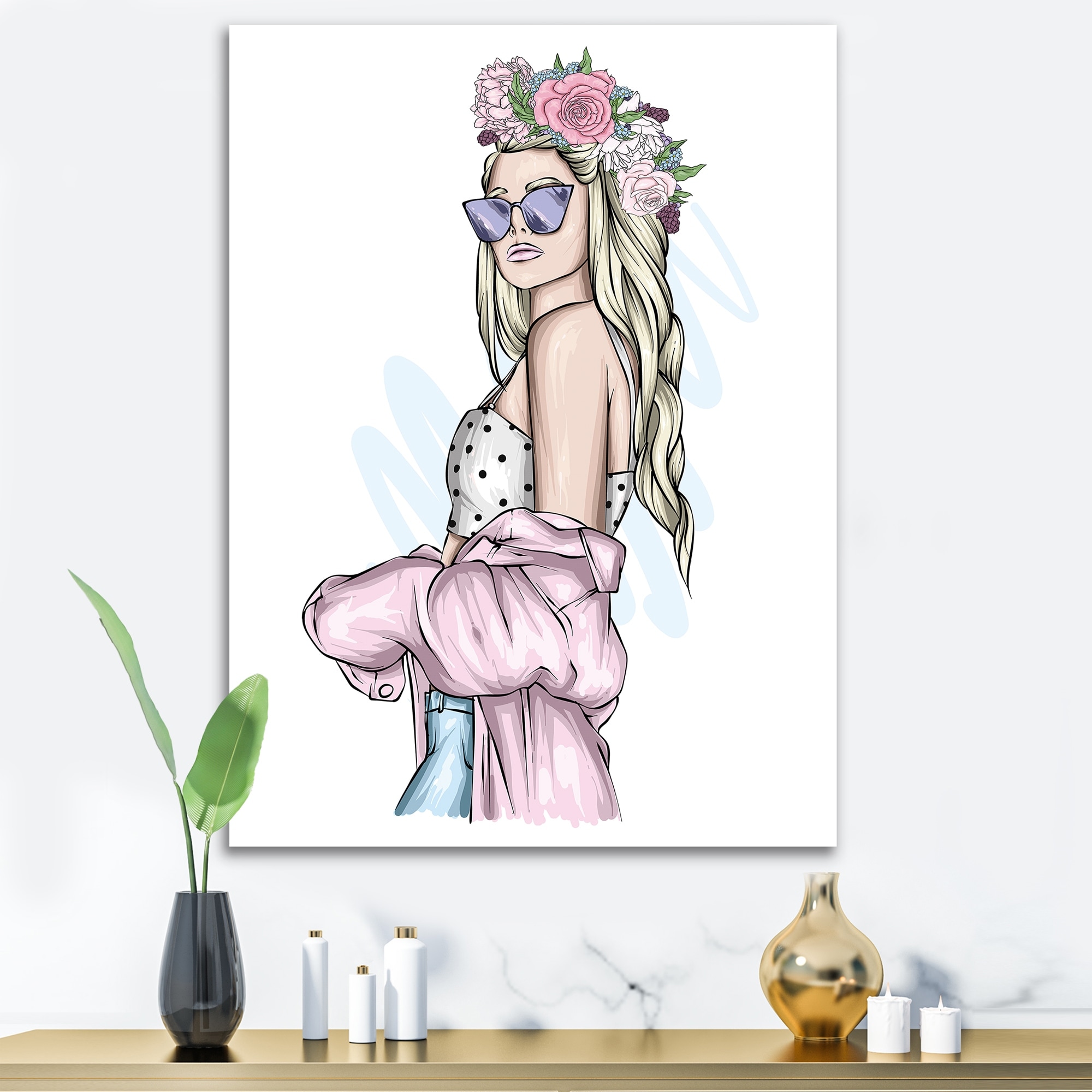 Designart 'Trendy Female With Sunglasses III' Fashion Canvas Wall Art