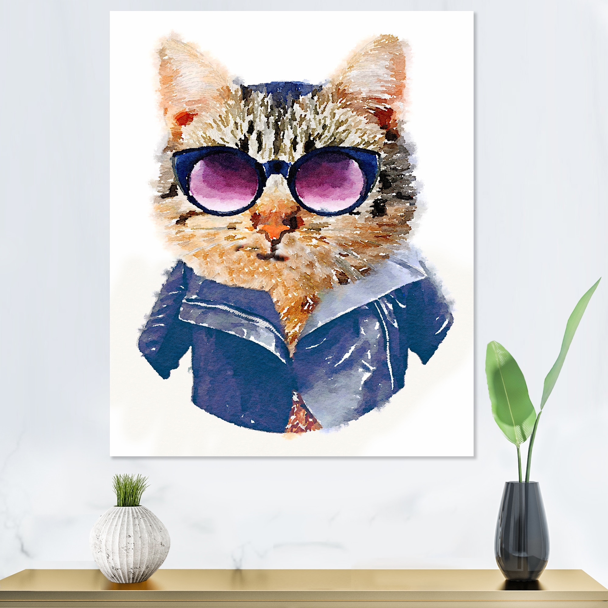 Designart "Cool Cat With Sunglasses I" Animals Cat Kittens Framed Canvas Wall Art