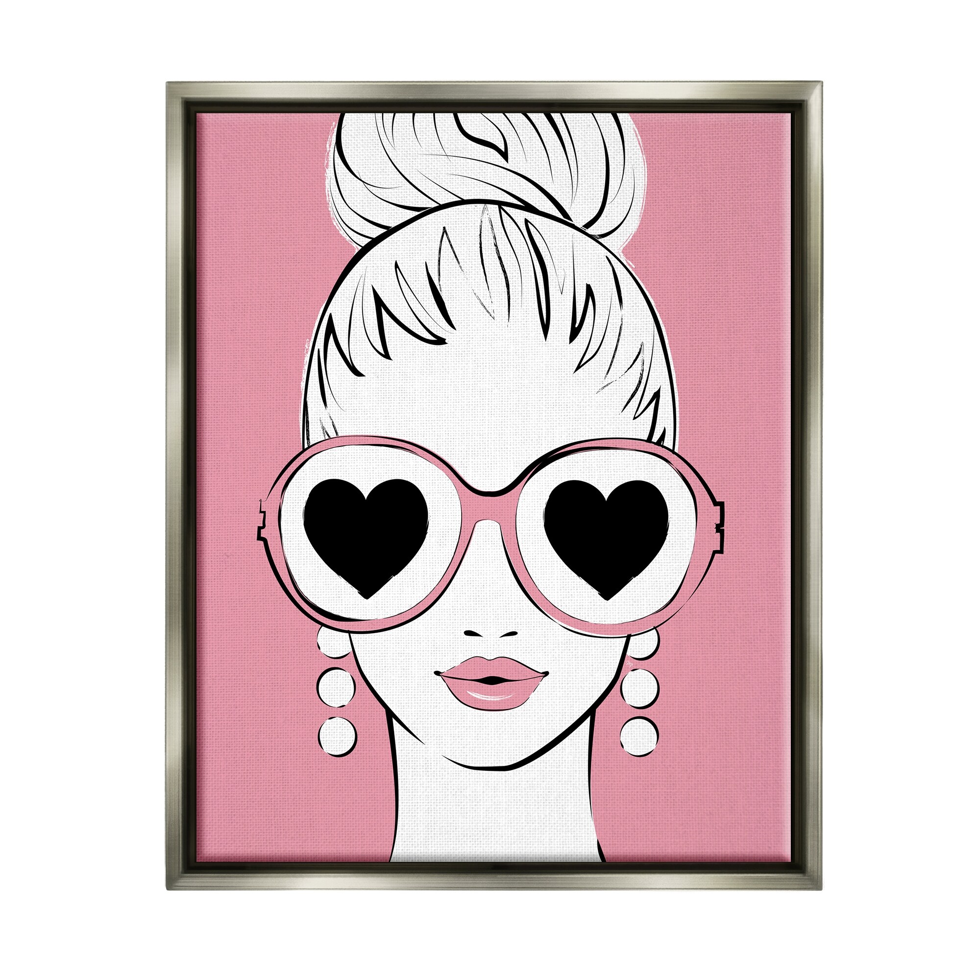 Stupell Fashionable Woman Heart Sunglasses Pink Glam Drawing Floater Frame, Design by Martina Pavlova