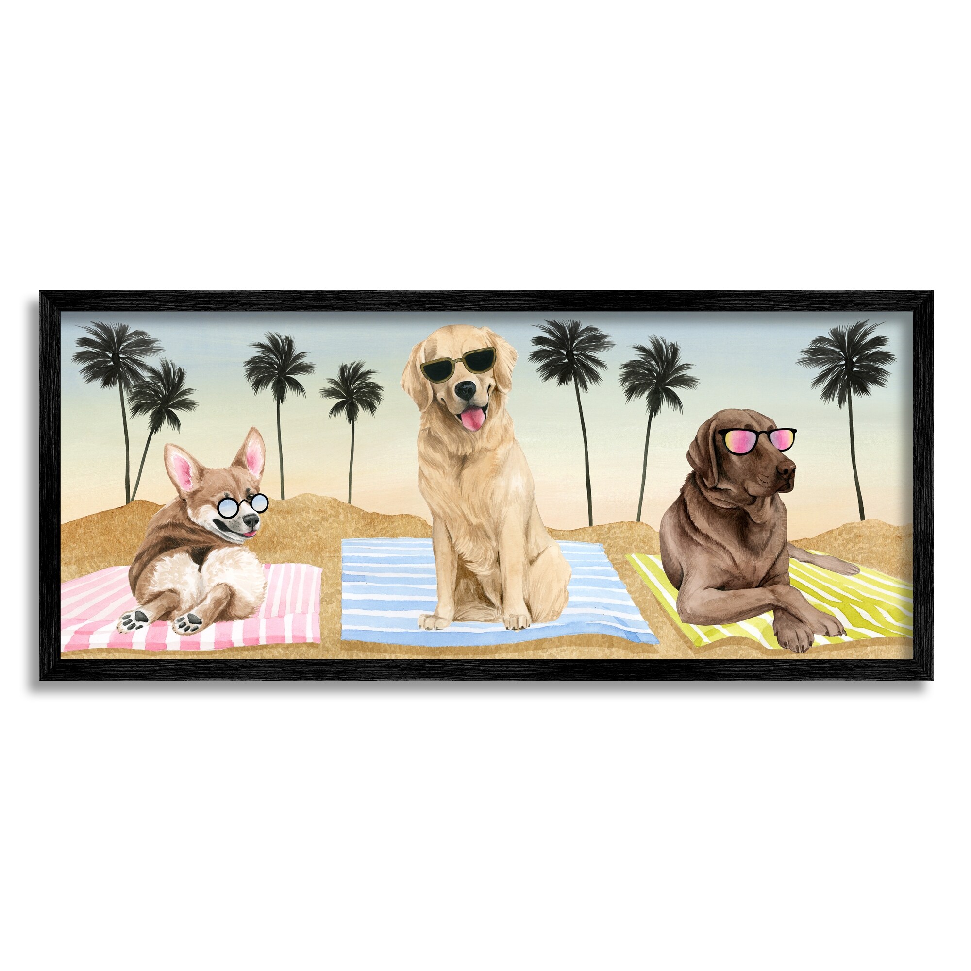 Stupell Whimsical Dogs Sunglasses Beach Towels Palm Trees Framed Wall Art - Multi-Color