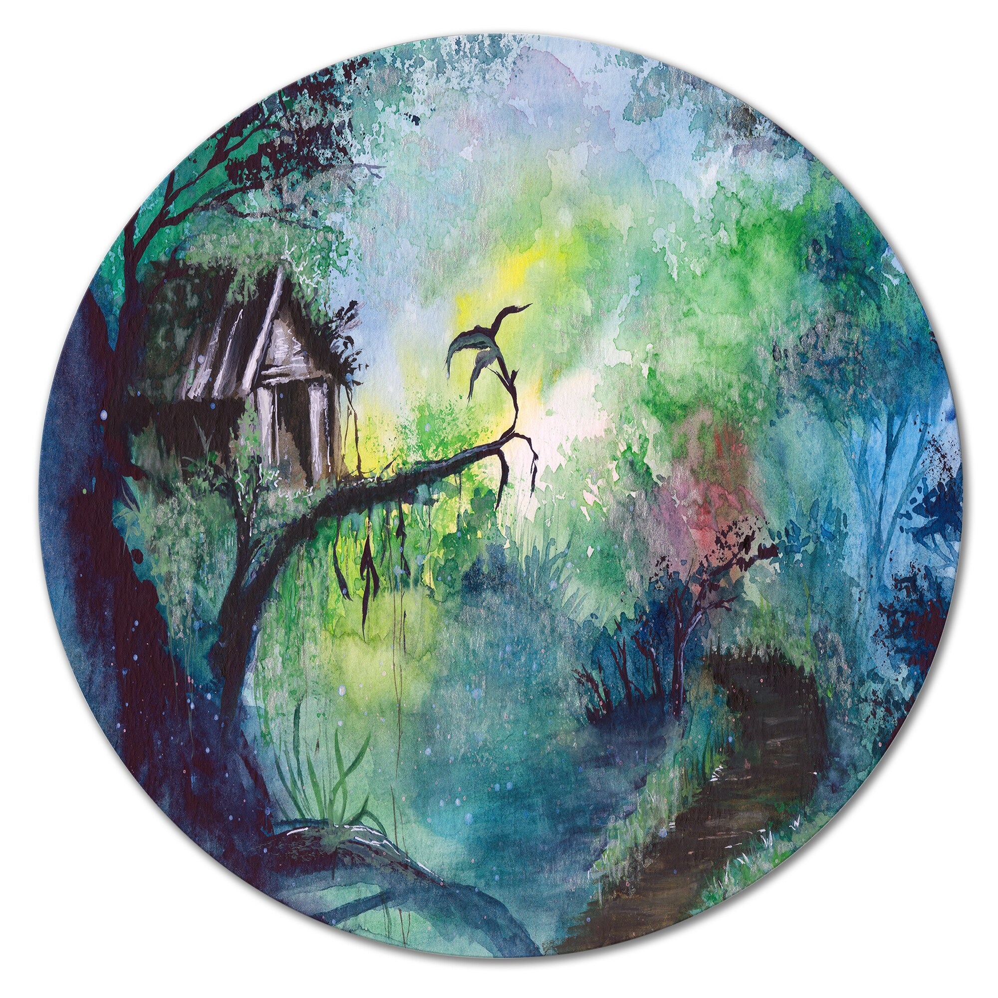 Designart 'A Fairy Tale House on the Giant Tree Branch' Traditional Metal Circle Wall Art