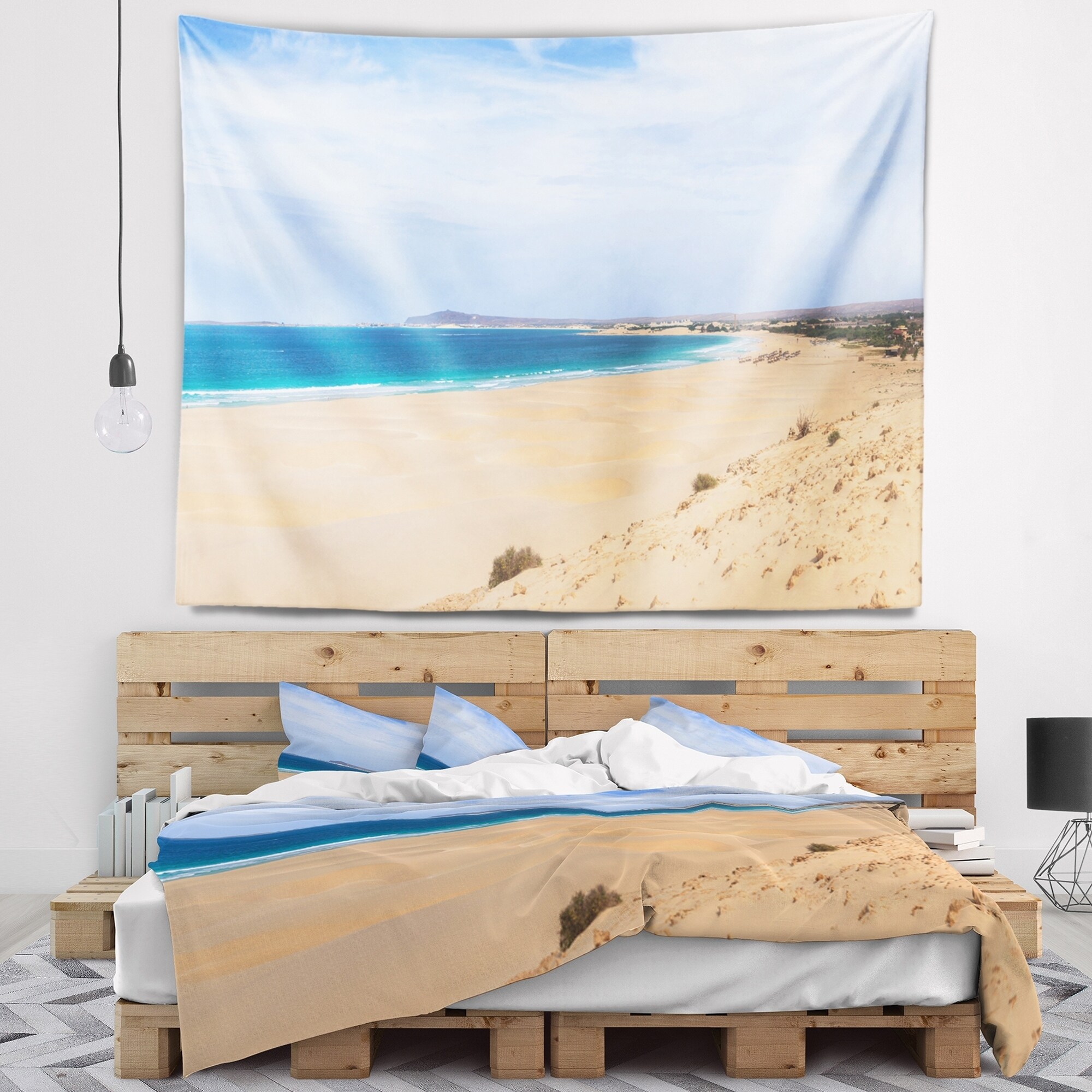 Designart 'Long Waves on Sand under Blue Sky' Seascape Wall Tapestry