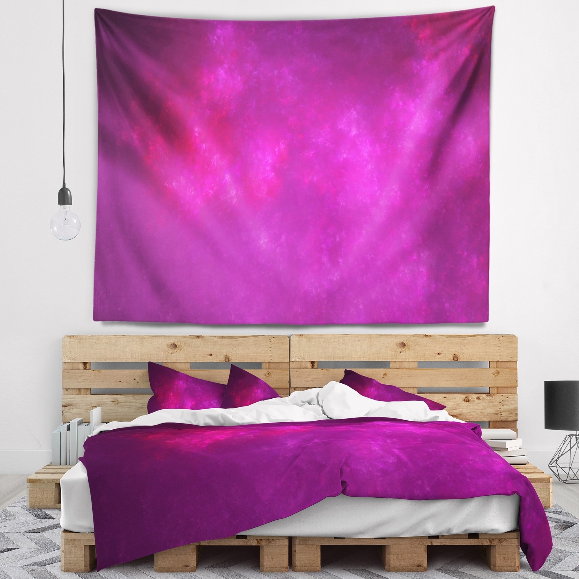 Designart 'Bright Pink Starry Fractal Sky' Abstract Wall Tapestry