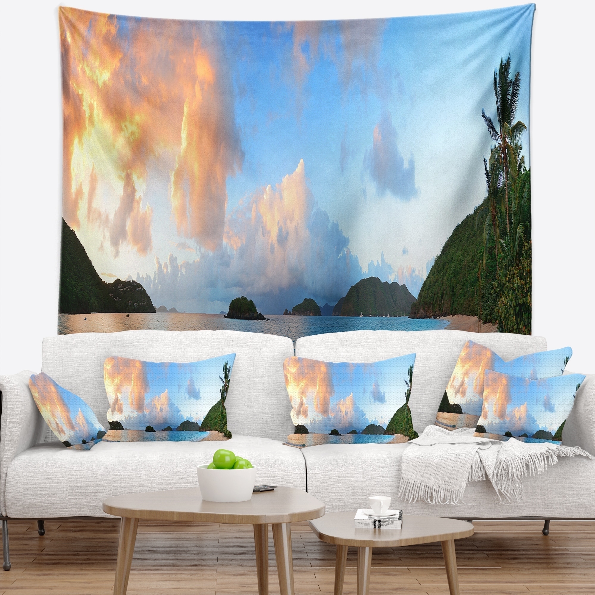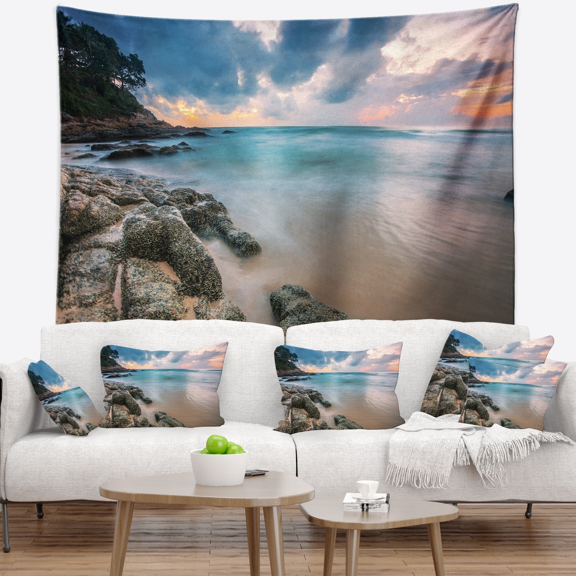 Designart 'Gloomy Tropical Sunset Beach' Seascape Wall Tapestry