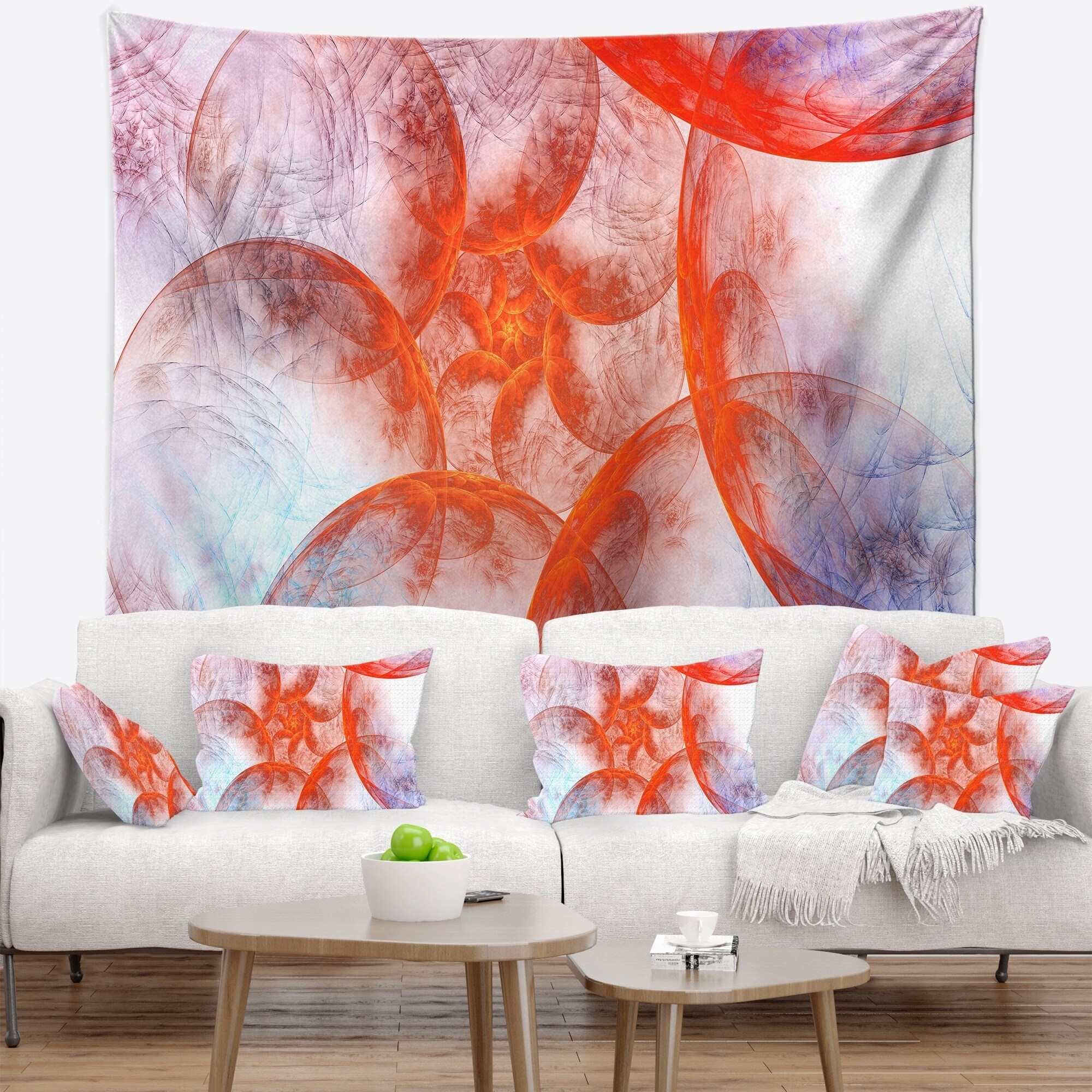 Designart 'Large Red Fractal Circles' Floral Wall Tapestry