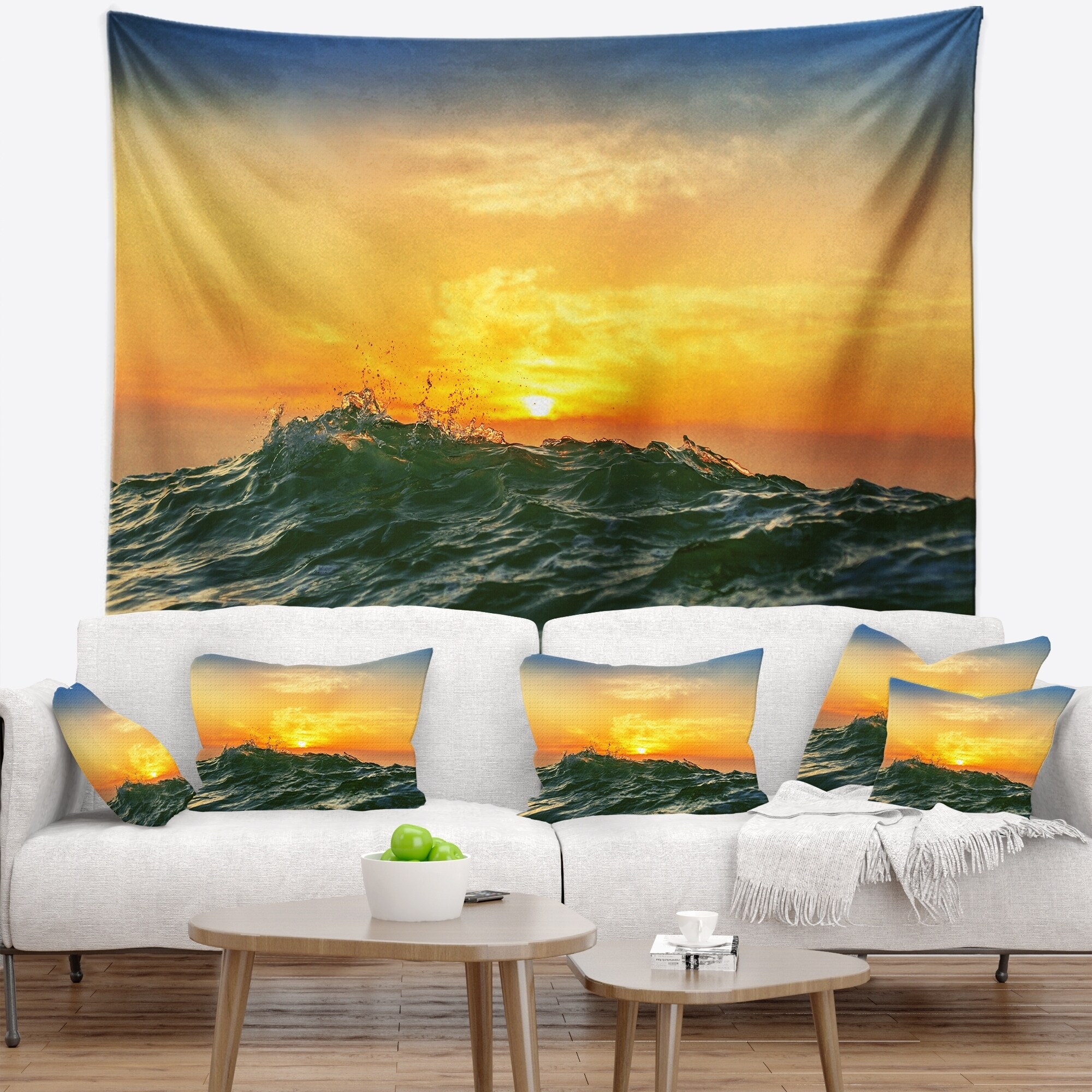 Designart 'Vibrant Morning Sea with Yellow Sun' Seascape Wall Tapestry