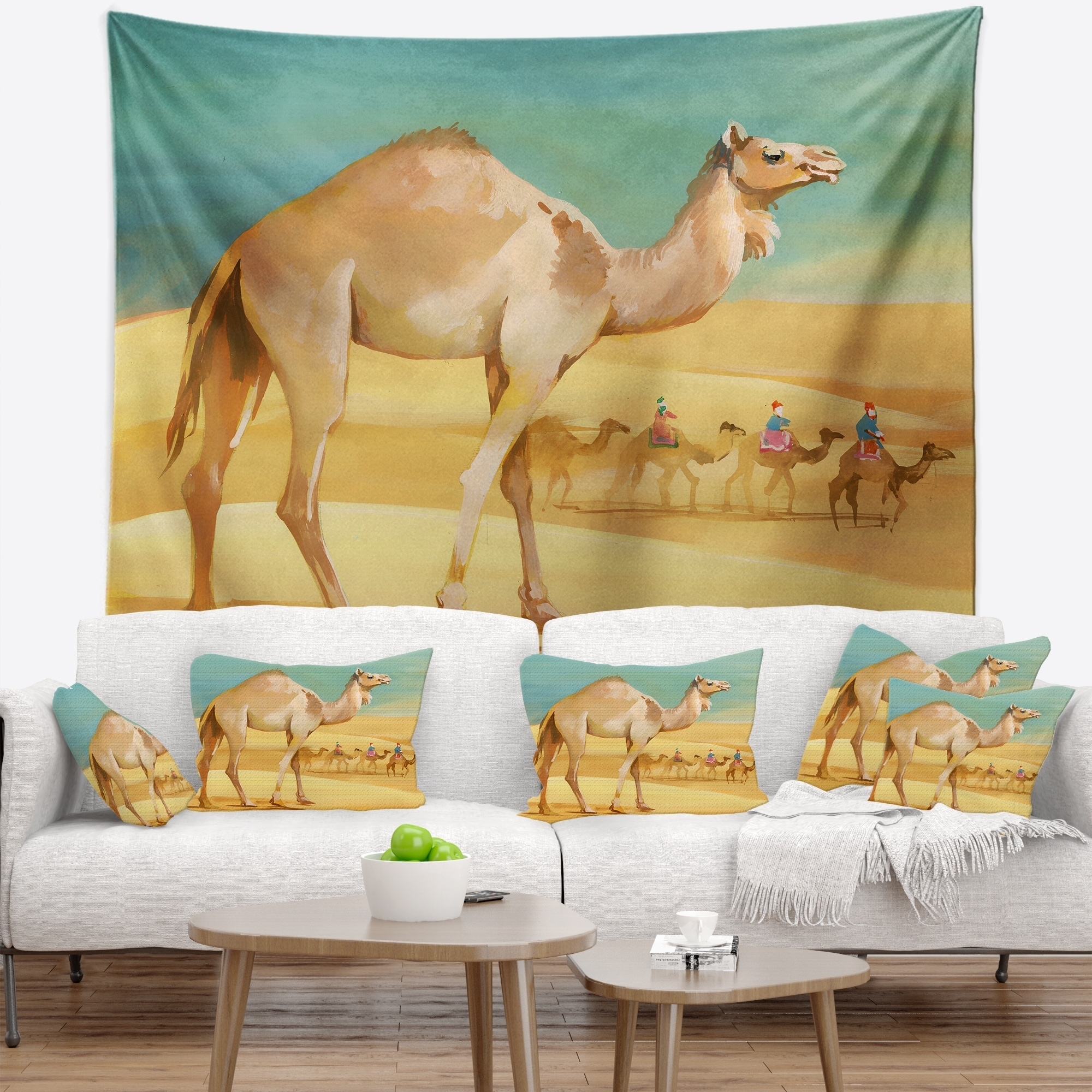 Designart 'Camel Walking in Desert' Watercolor Animal Wall Tapestry