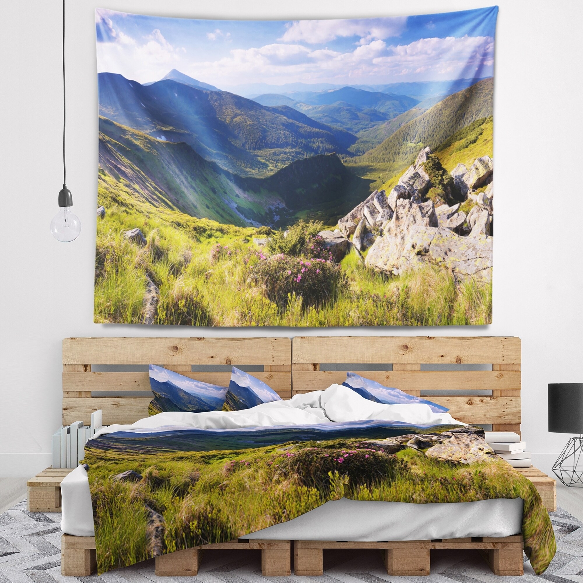 Designart 'Rocky Summer Hills under Blue Sky' Landscape Wall Tapestry