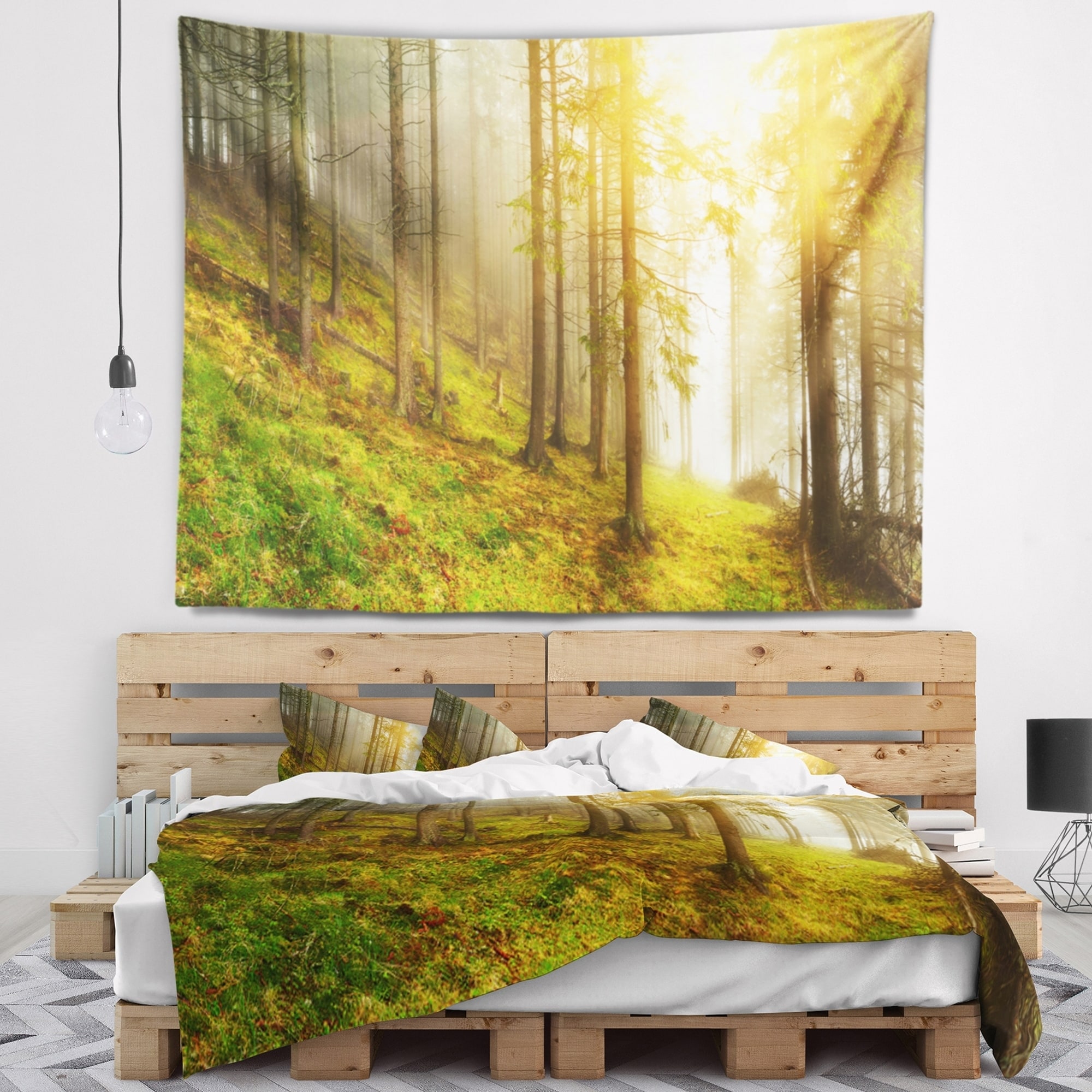Designart 'Sun Finds its Way in Forest' Landscape Photography Wall Tapestry