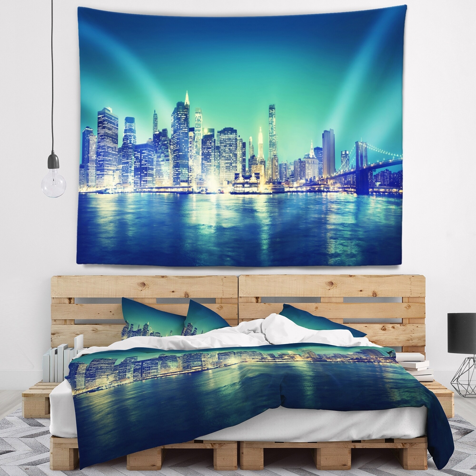 Designart 'New York City Panorama Night Concept' Cityscape Wall Tapestry