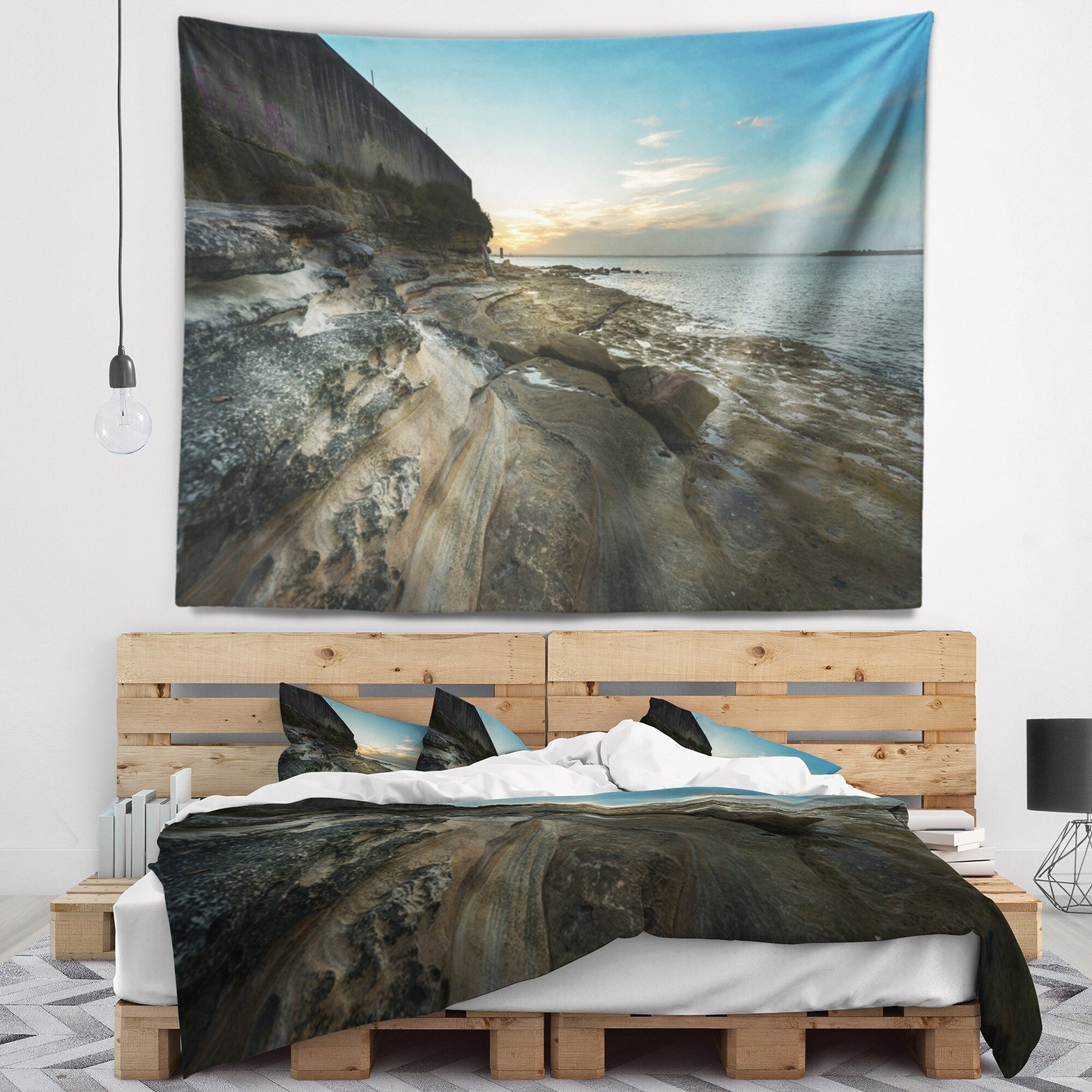 Designart 'Rocky Sydney Beach View' Seascape Wall Tapestry