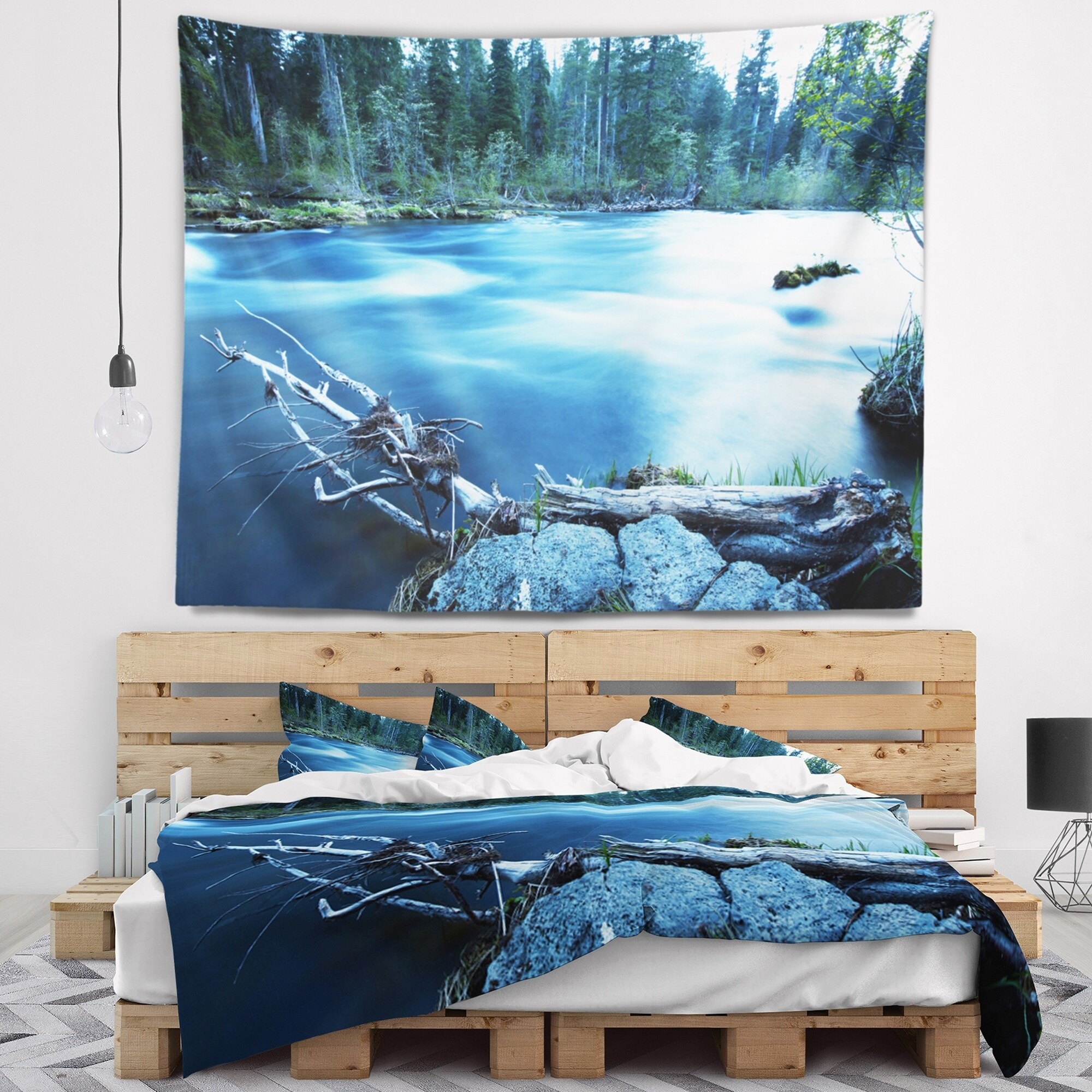 Designart 'Beautiful Blue River in Forest' Landscape Wall Tapestry