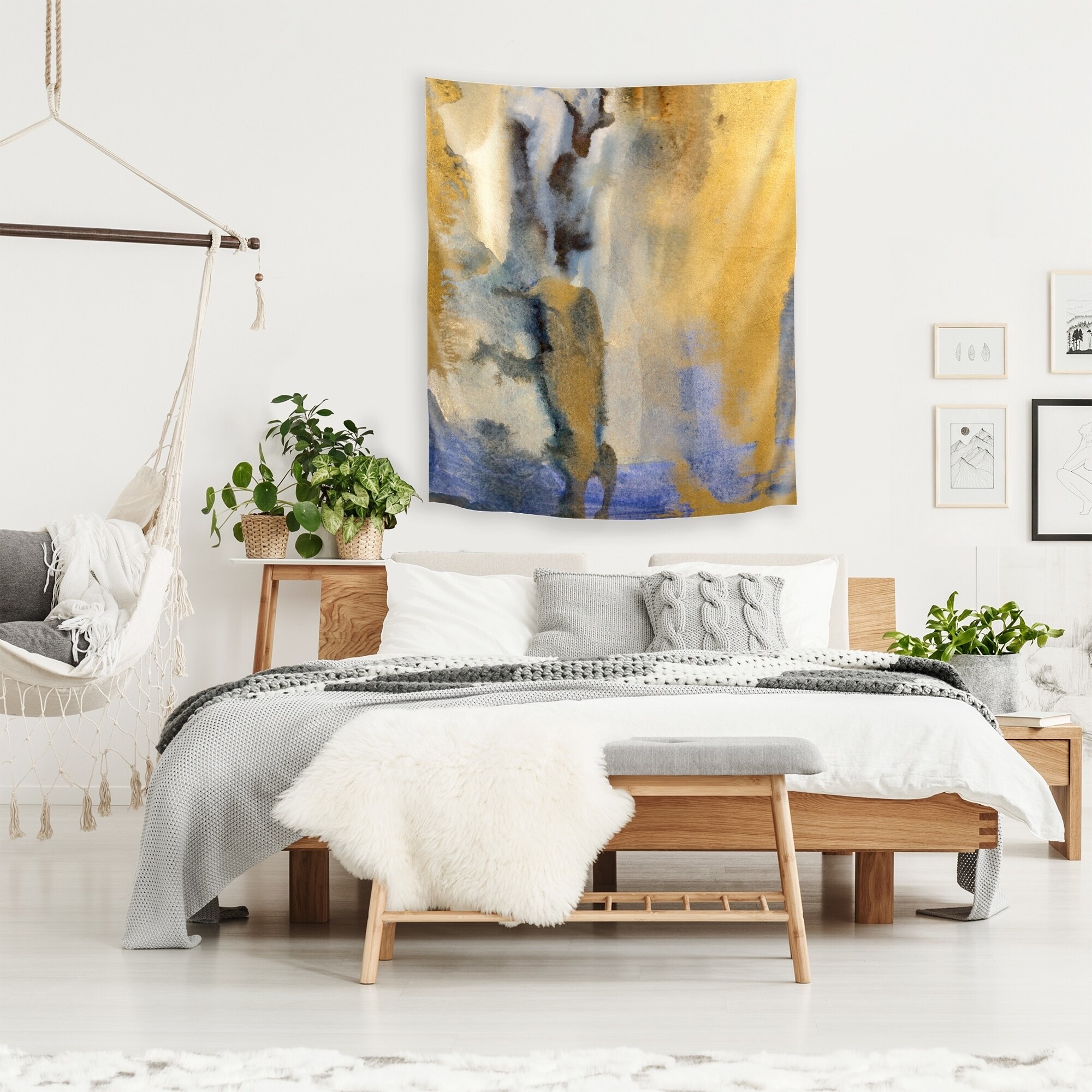 Designart 'Blue And Gold Floral Bunch I' Floral Wall Tapestry