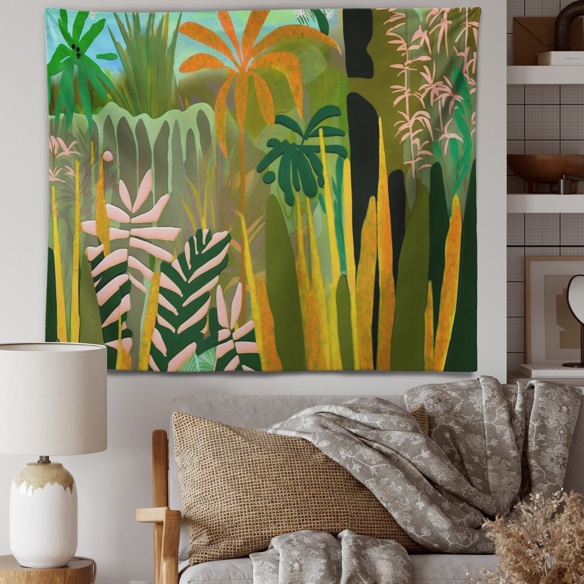 Designart 'Blossoming And Vibrant Jungle Flora III' Coastal Wall Tapestry