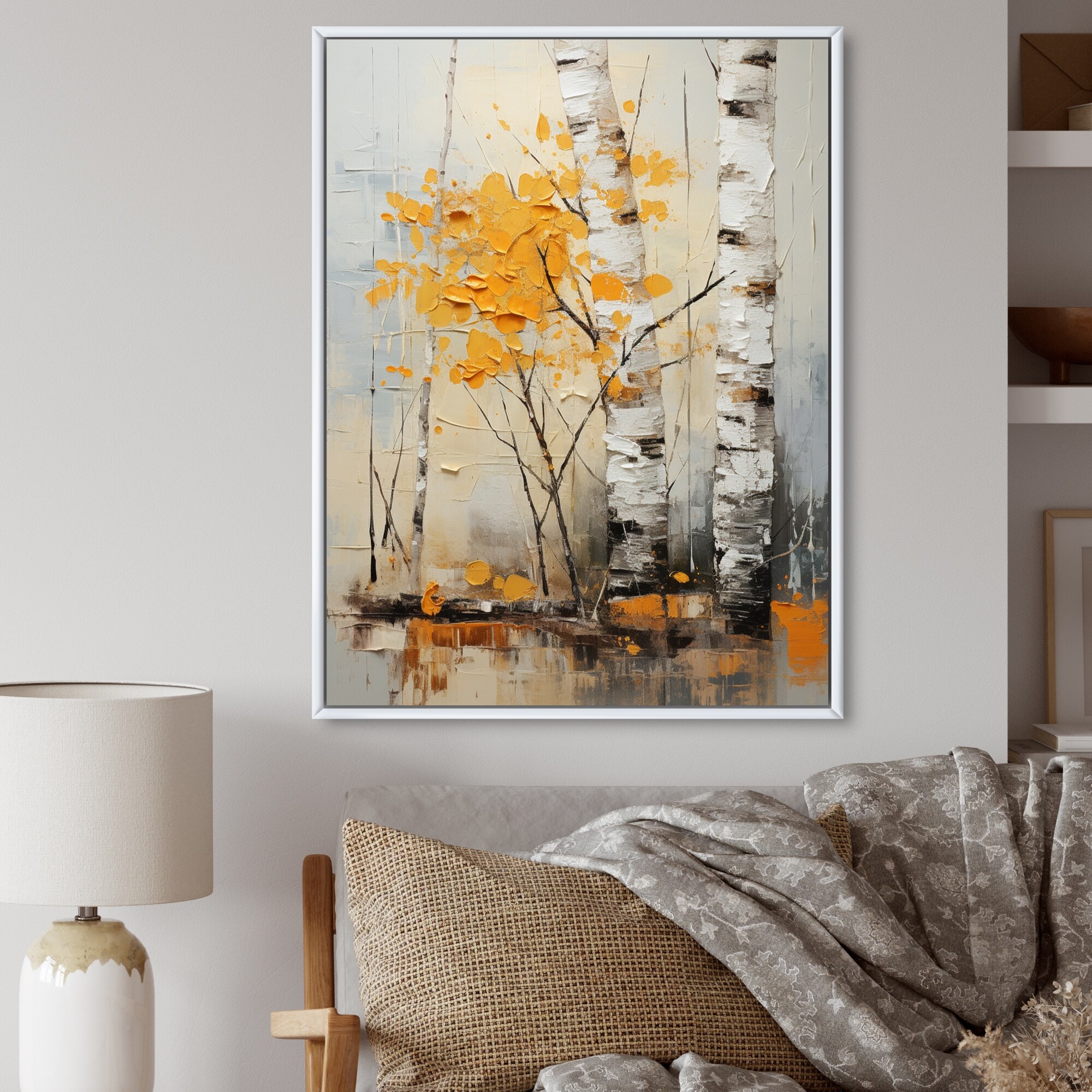 Designart "Birch Woods Autumn Tapestry II" Tree Birch Framed Wall Art Prints