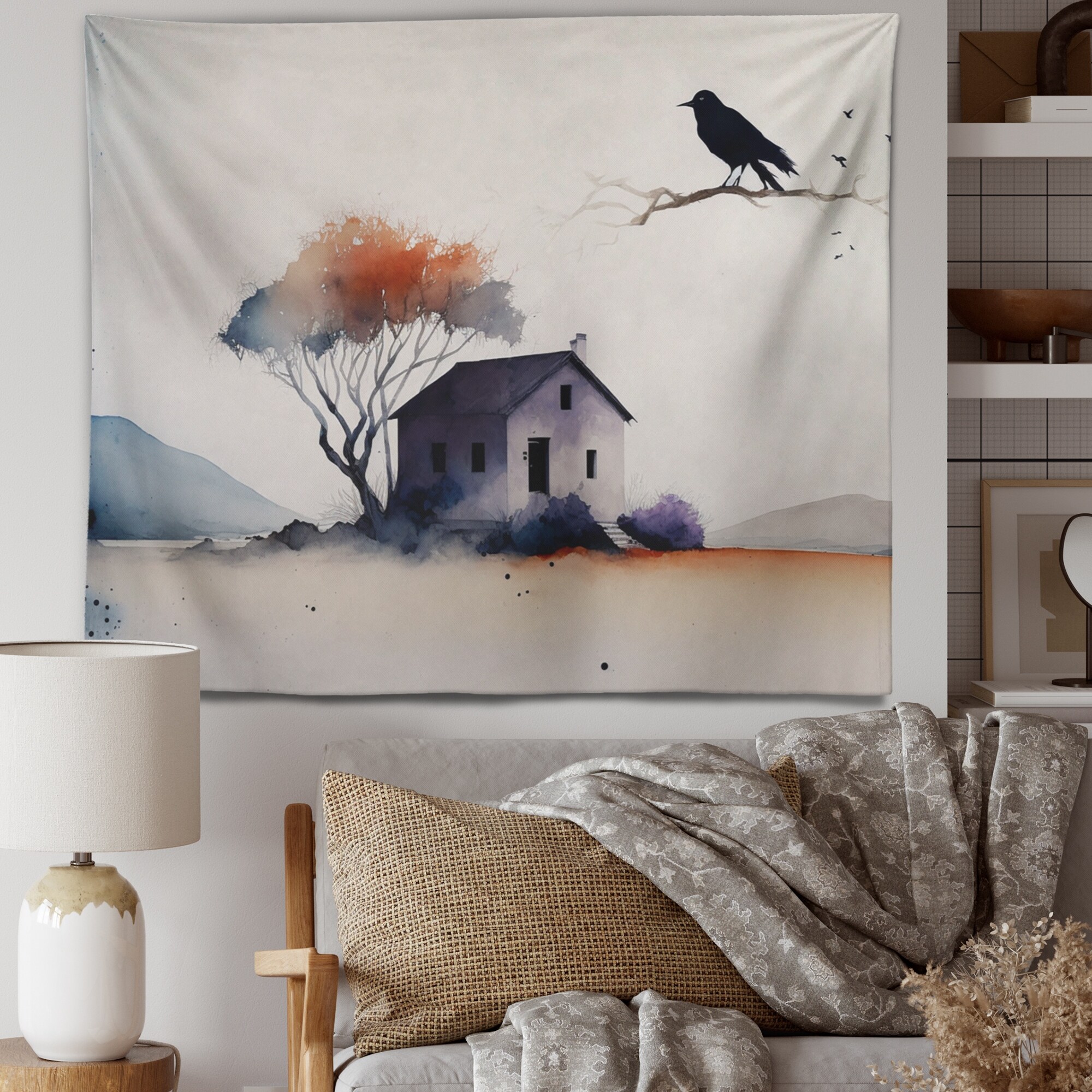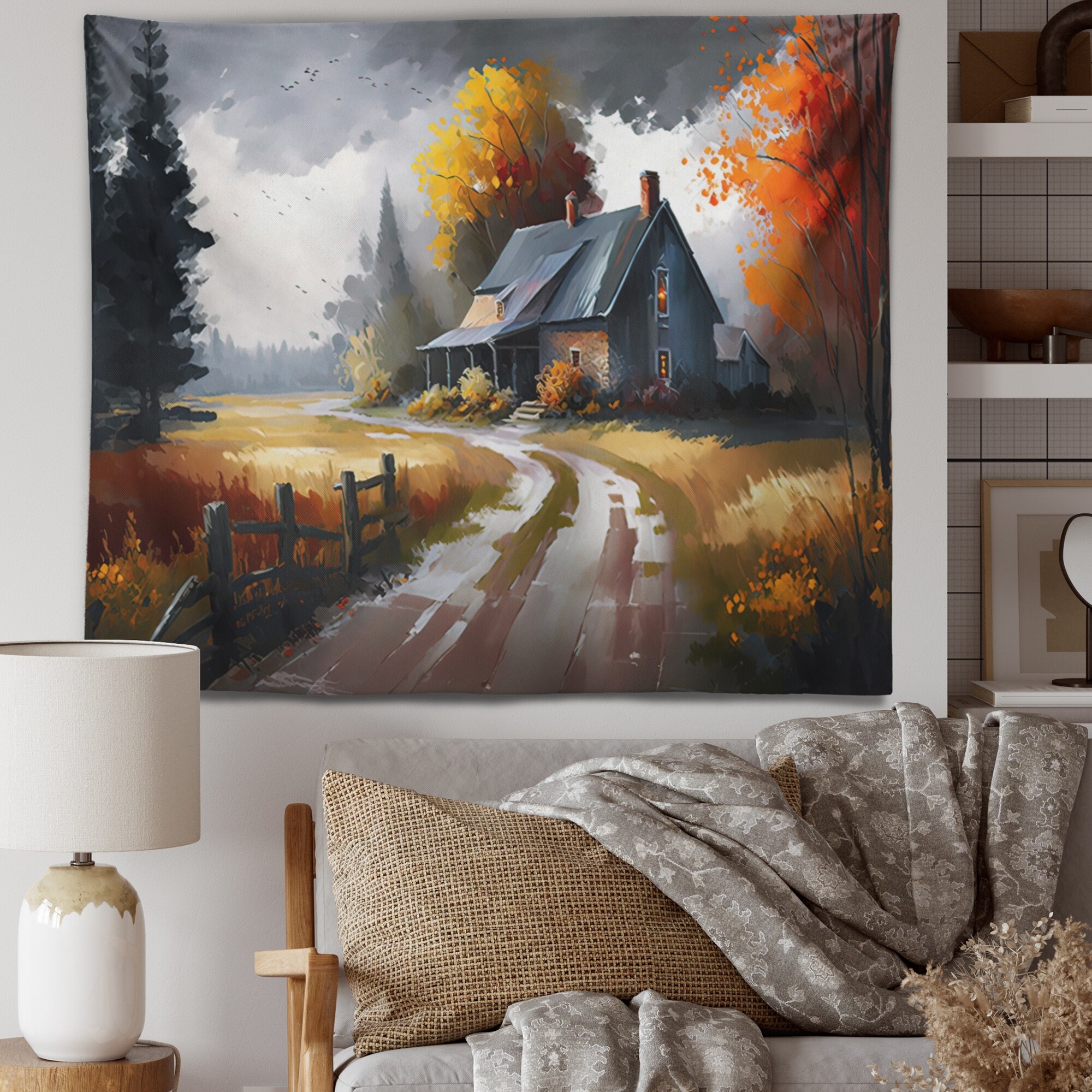 Designart 'Welcome To the Cottage House VI' Cottage Landscape Wall Tapestry