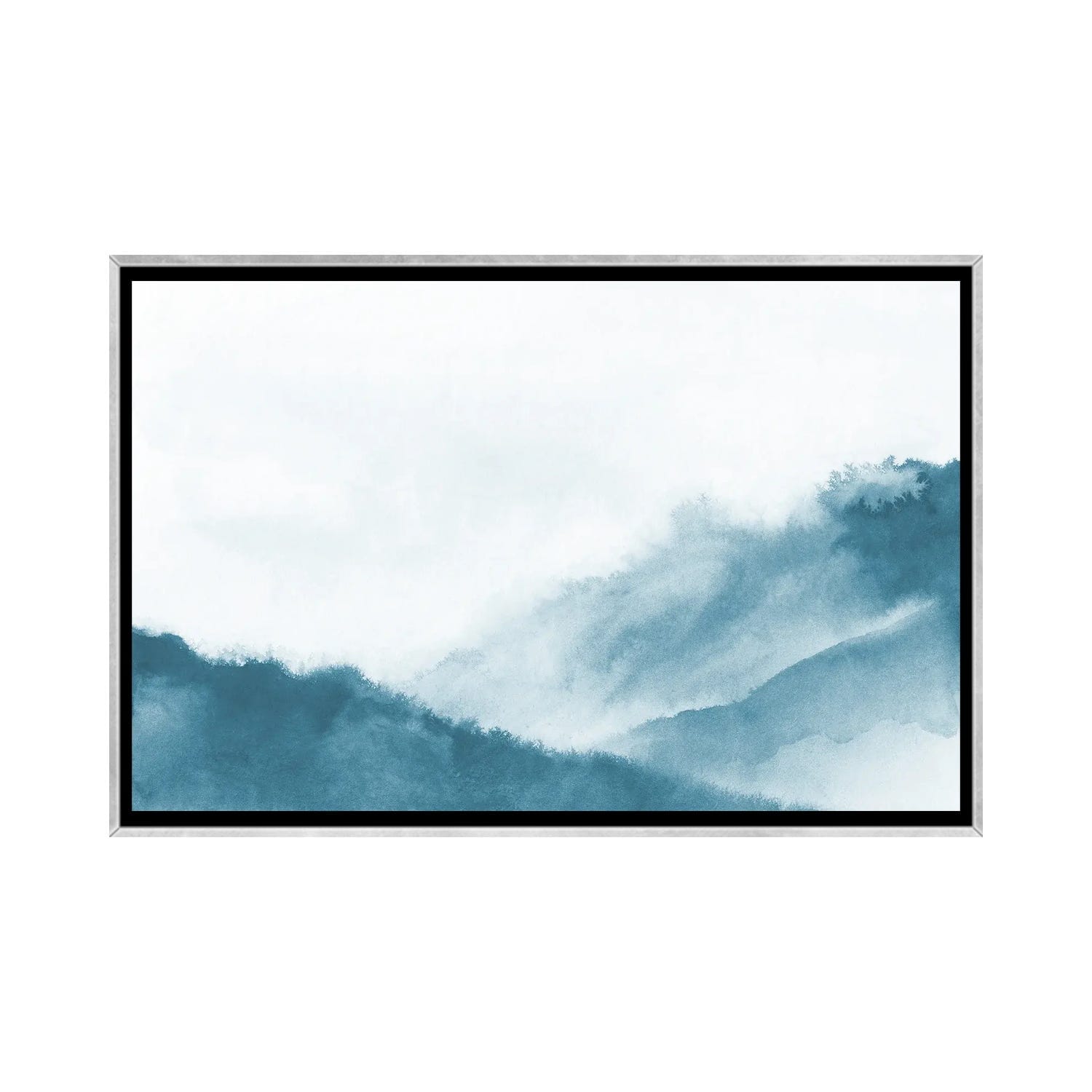 iCanvas "Misty Mountains in Teal Watercolor" by Nouveau Prints Framed