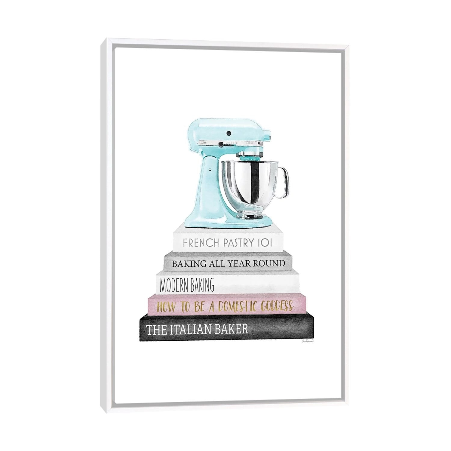 iCanvas "Baking Bookstack With Teal Mixer" by Amanda Greenwood Framed Canvas Print