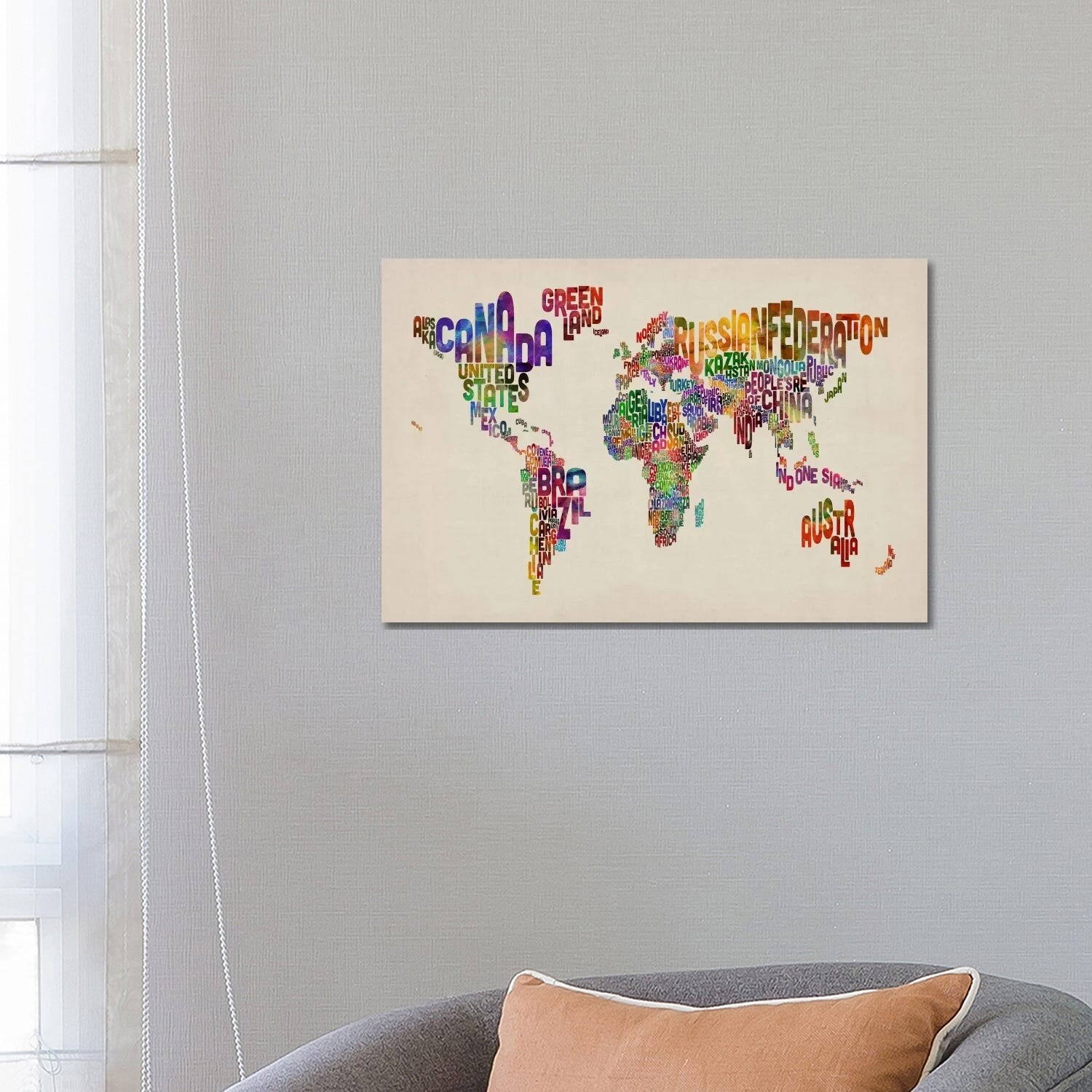 iCanvas "Typographic Text World Map VIII" by Michael Tompsett Canvas Print